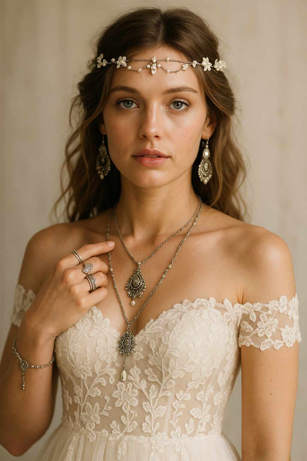 Always remember: your boho bridal jewellery should enhance your outfit, not take away from it. Let each piece blend naturally with your look.