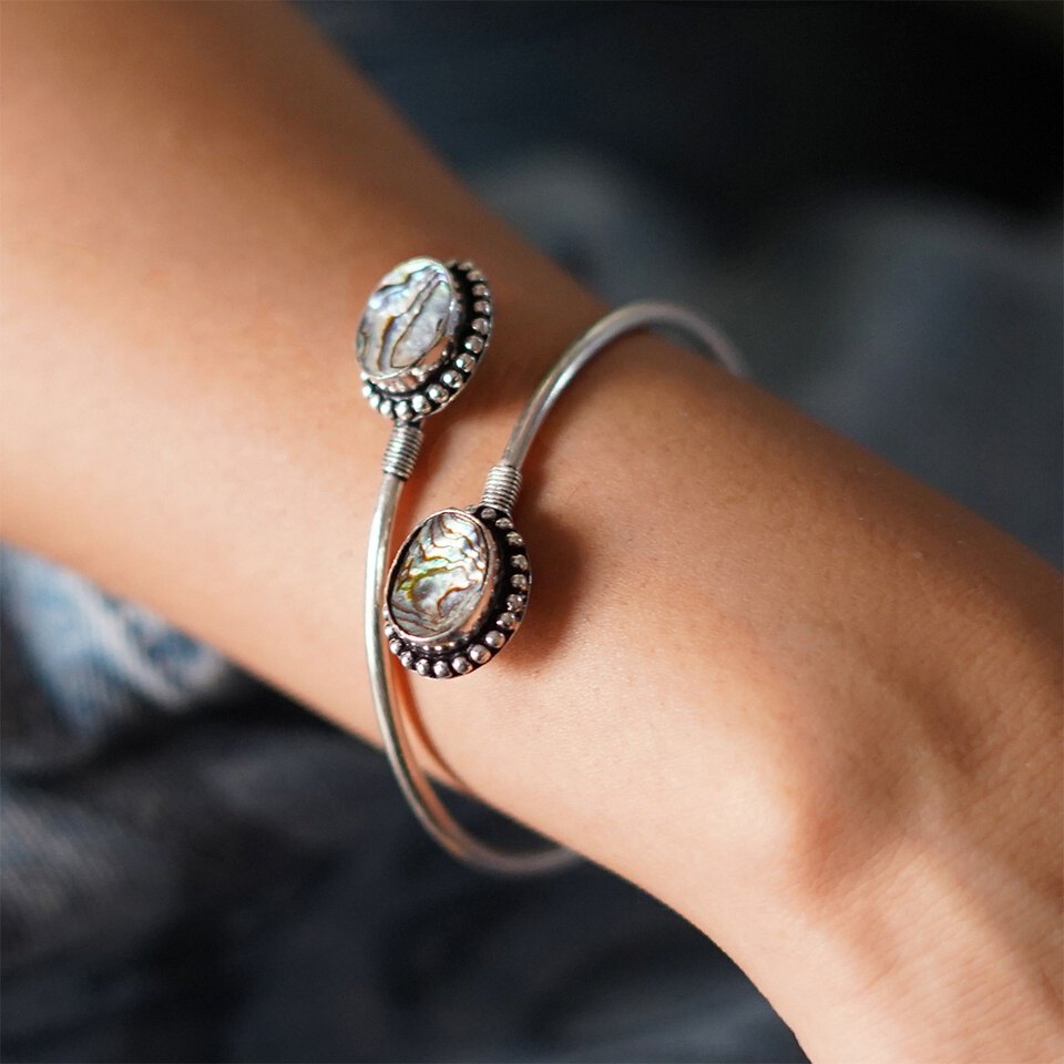 Luxury Gemstone Cuff Bracelet for Women Abalone Shell Boho Design...