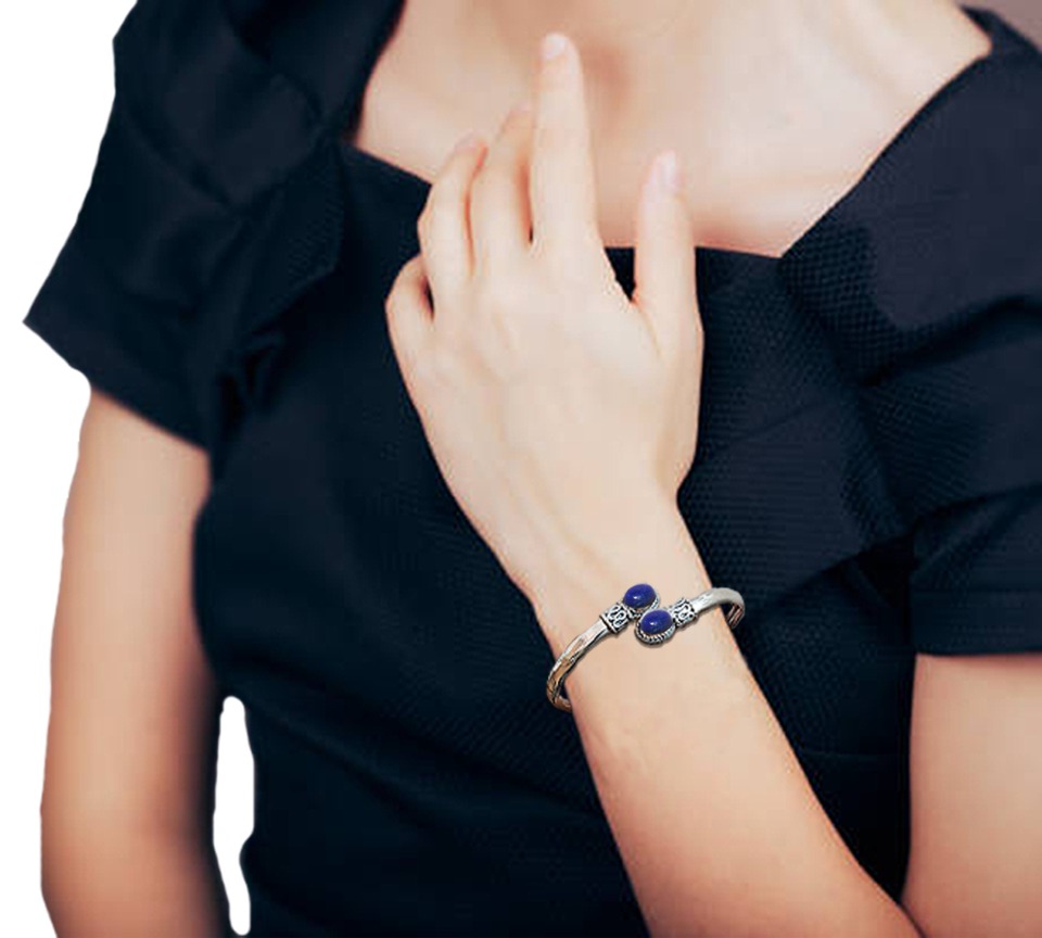 Lapis Lazuli Gemstone Cuff Bracelet for Women Elegant Designer Jewelry...