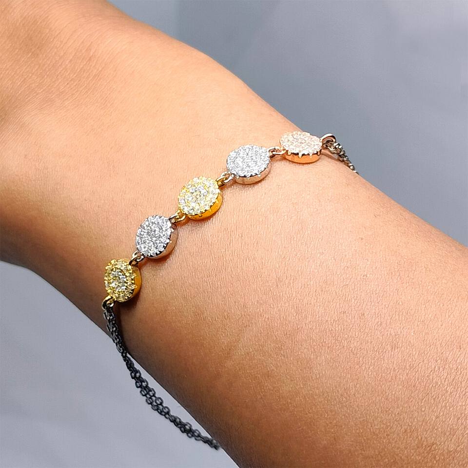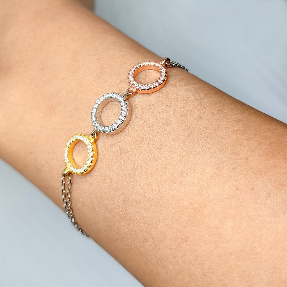 Dainty Bracelet in 925 Sterling Silver with Yellow and Rose...