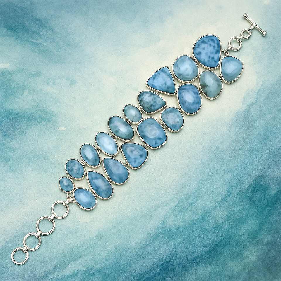Elegant Larimar Statement Bracelet Handmade Statement Jewelry for Women