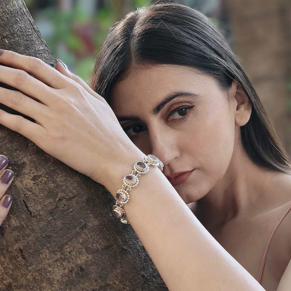 Handmade Purple Amethyst Sterling Silver Link Bracelet Elegant Jewelry