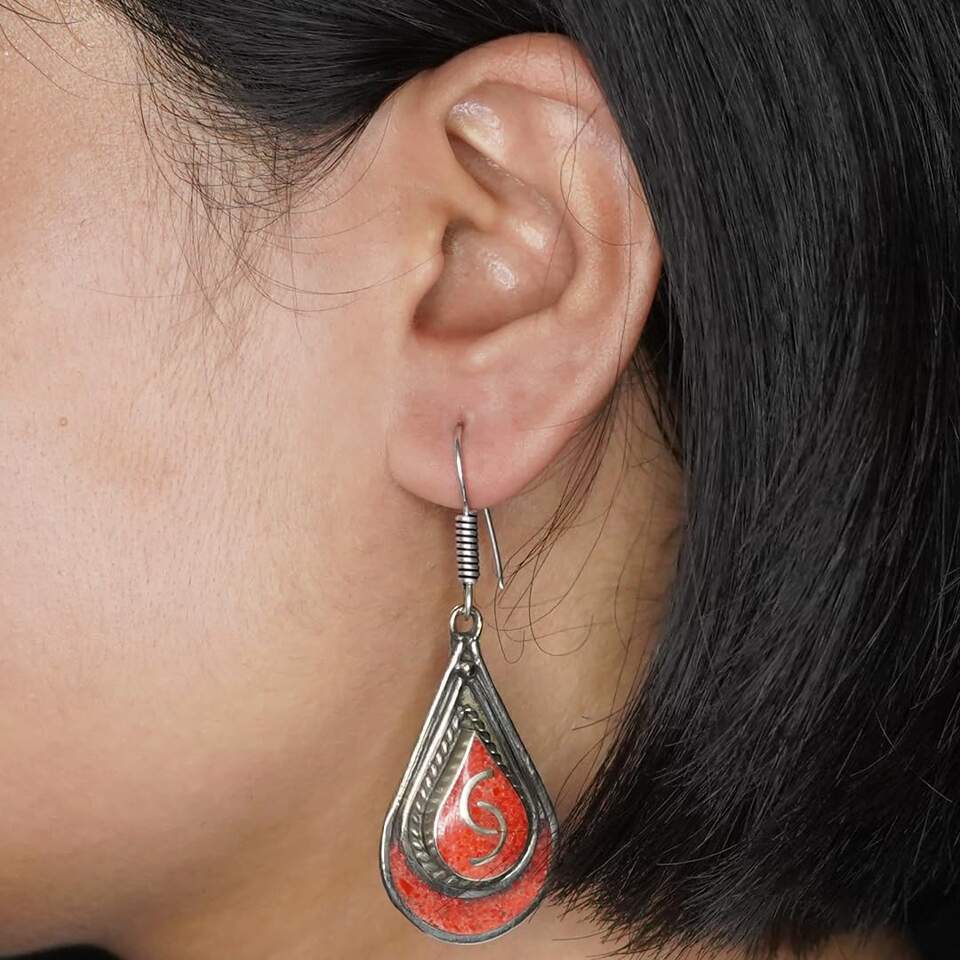 Coral Gemstone Handmade Boho Jewelry Designer Earrings