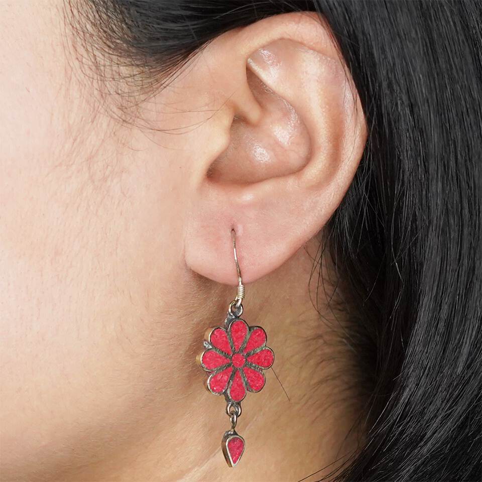 Coral Gemstone Flower Design Boho Earrings Handmade Fashion Jewelry