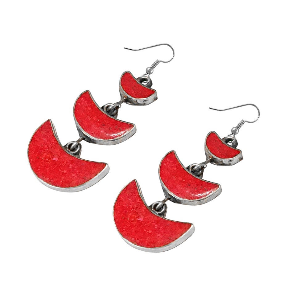 Coral Gemstone Handmade Boho Fashion Jewelry Dangle Earrings