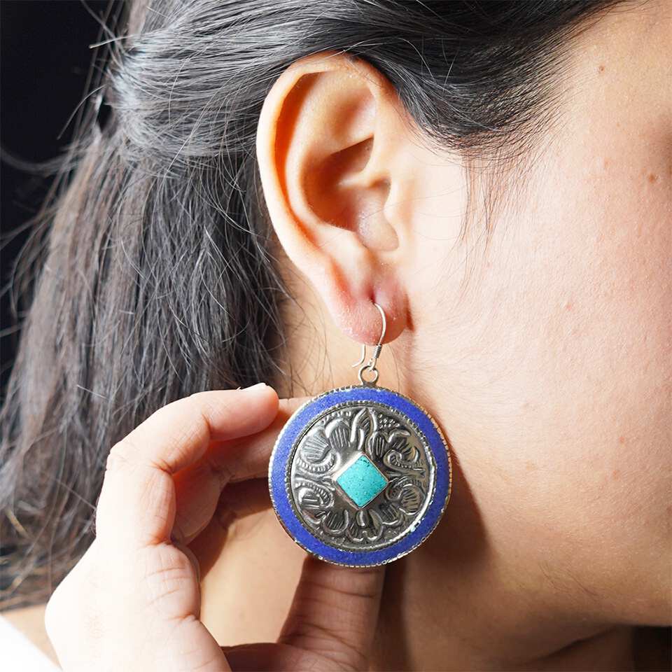 Handmade Boho Earrings Lapis Lazuli and Turquoise Gemstone Fashion Jewelry