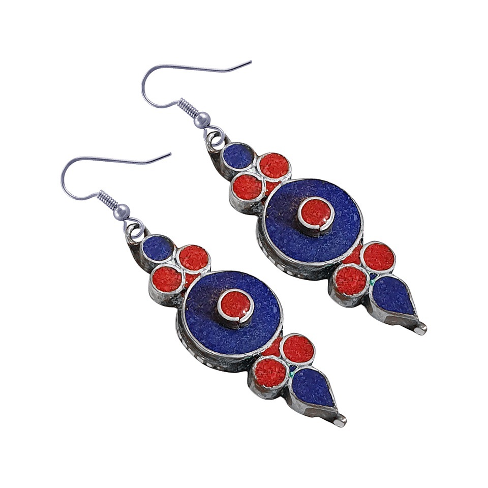 Handmade Boho Earrings Coral and Lapis Lazuli Gemstone Fashion Jewelry