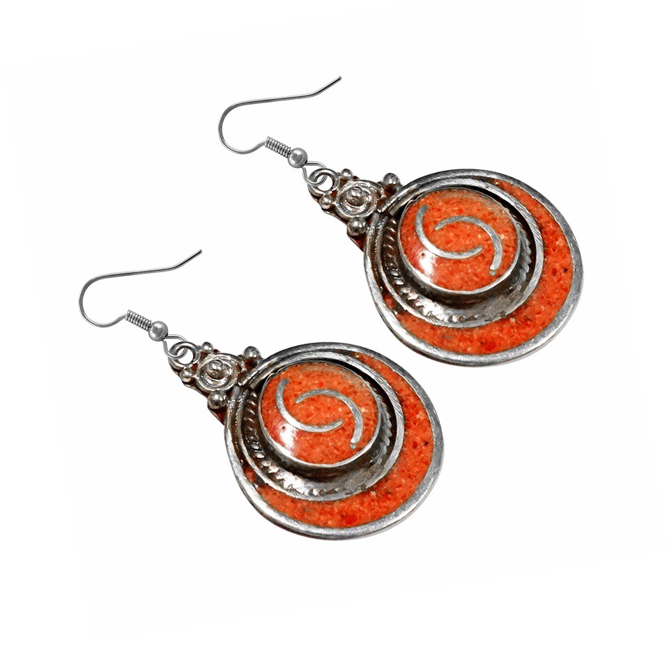 Handmade Earrings Coral Gemstone Boho Fashion Jewelry