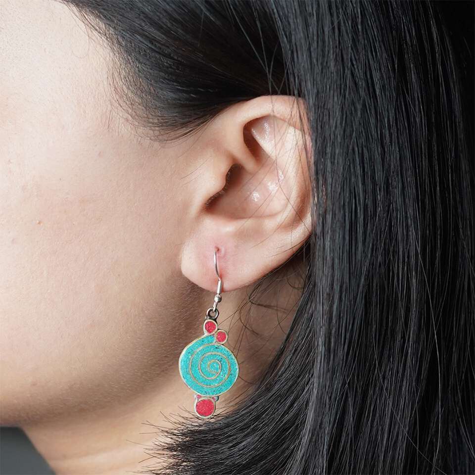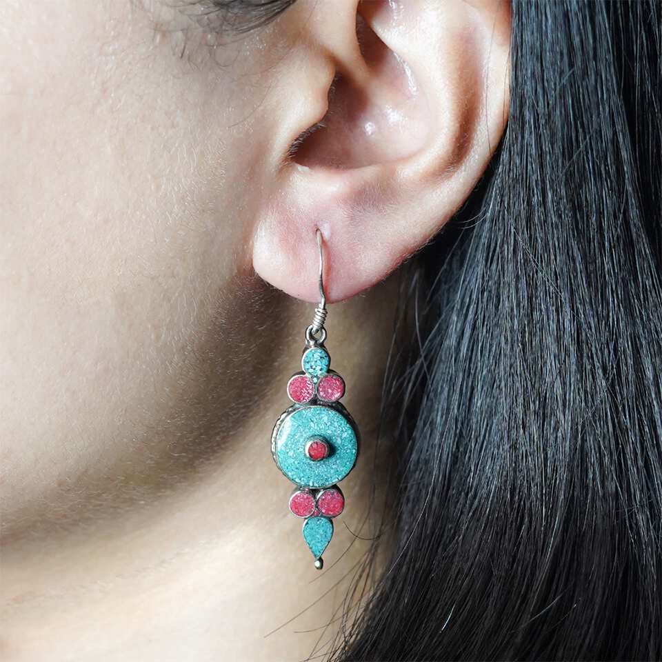 Handmade Boho Earrings Turquoise and Coral Gemstone Fashion Jewelry