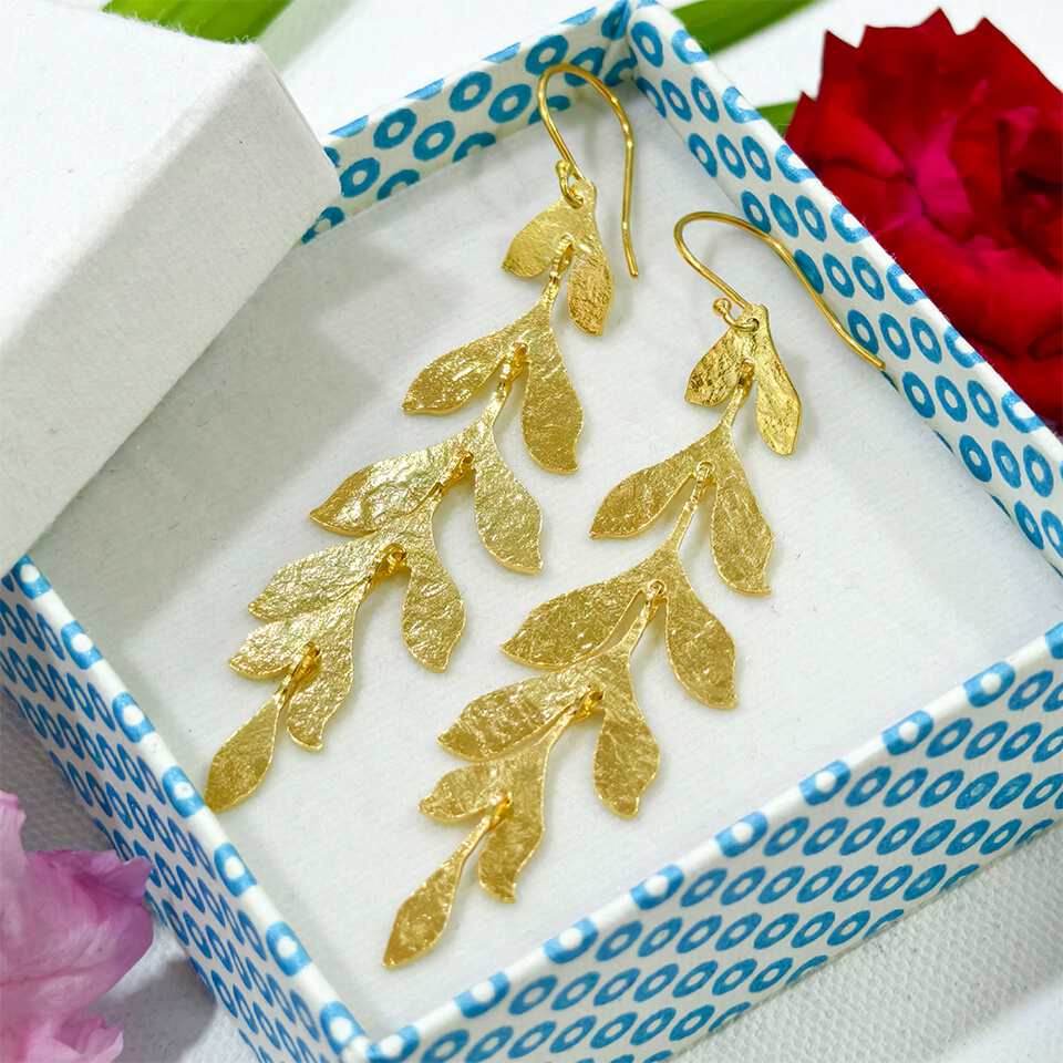 Handmade Minimalistic 18K Gold-Plated Silver Chandelier Earrings for Women Elegant...