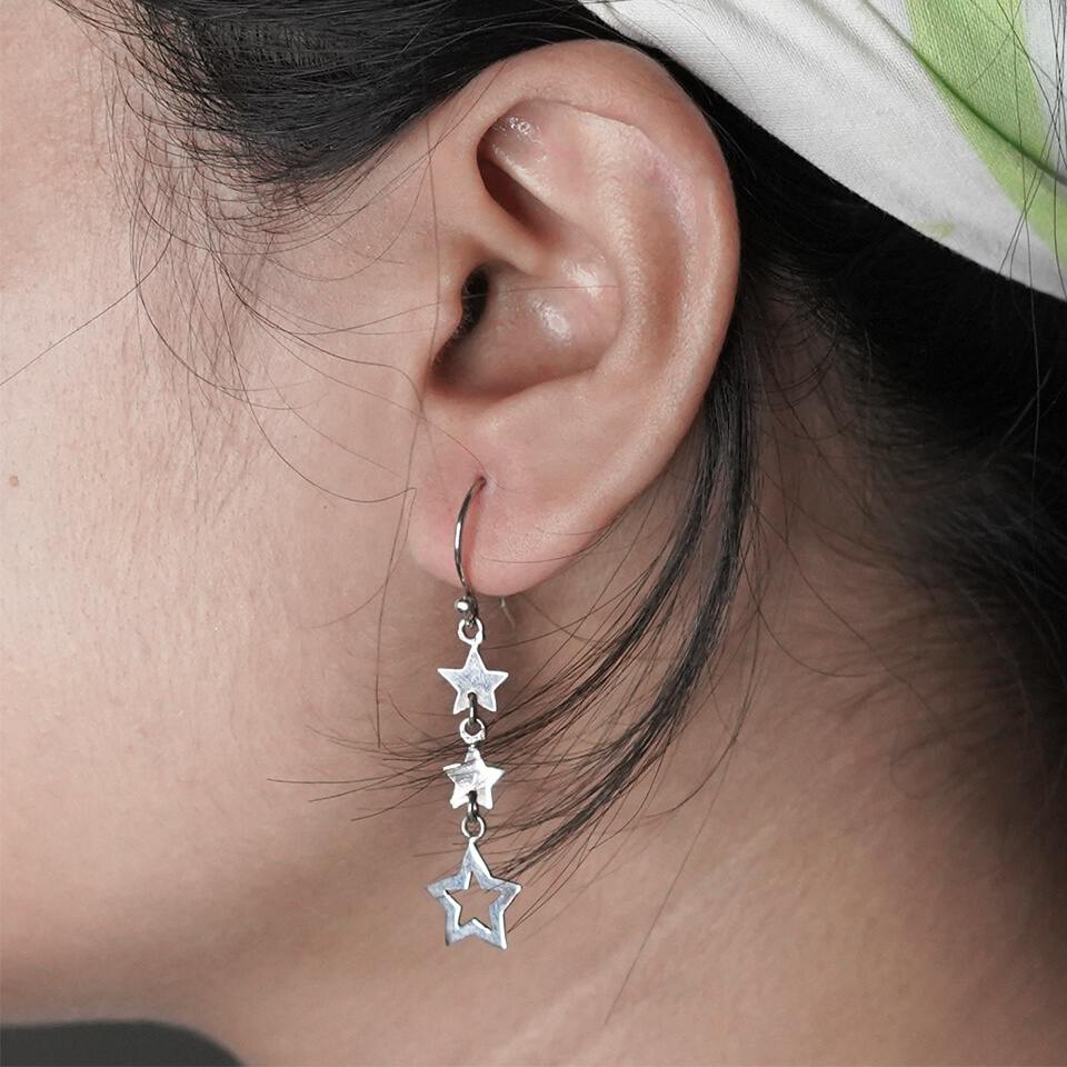 Star Design Drop Dangle Earrings Handmade Elegance Modern 925 Sterling...