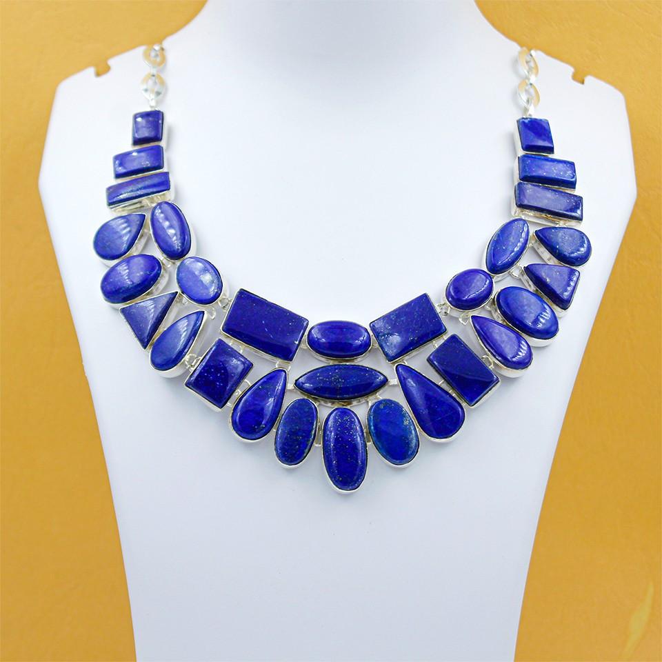 Handcrafted Lapis Lazuli Necklace for Women Silver Plated Brass...