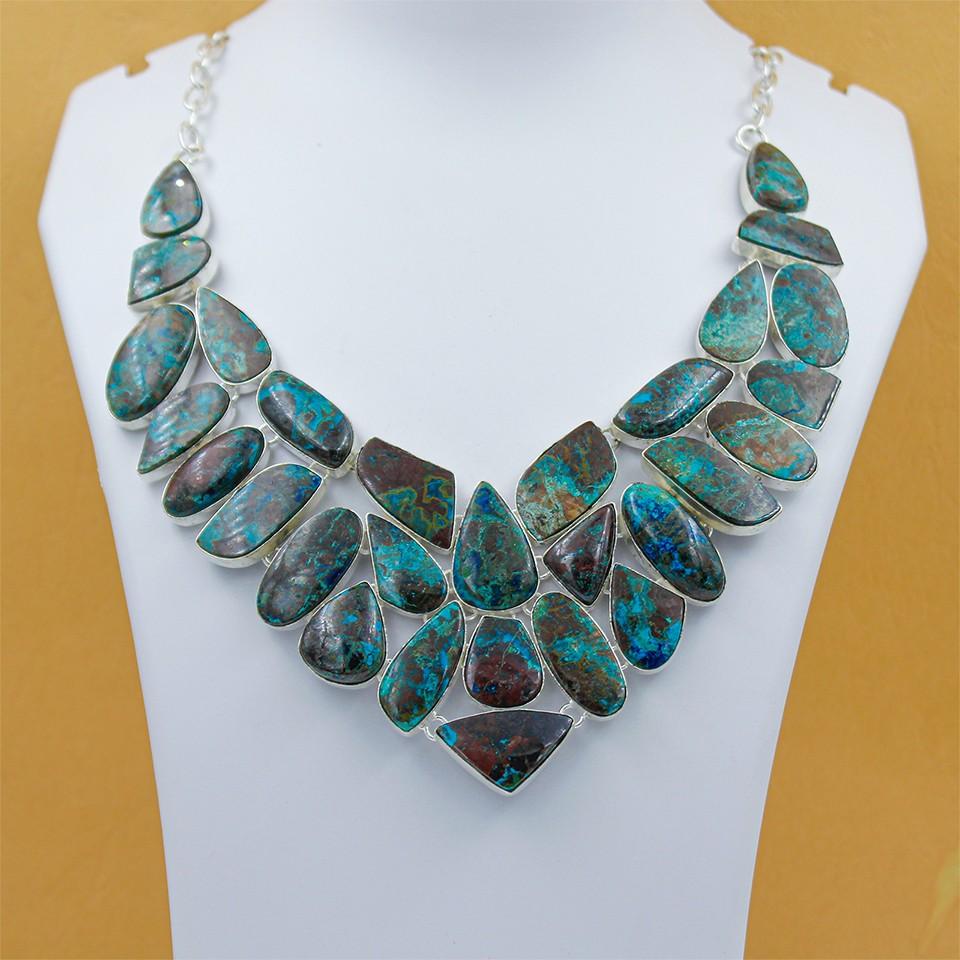 Tibetan Silver Turquoise Silver-Plated Brass Necklace Handmade Statement Gemstone Jewelry
