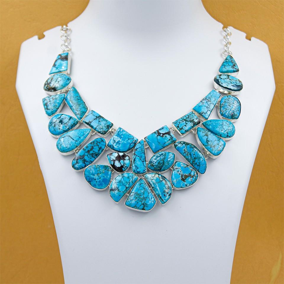 Handcrafted Turquoise Necklace for Women Silver Plated Brass Statement Jewelry