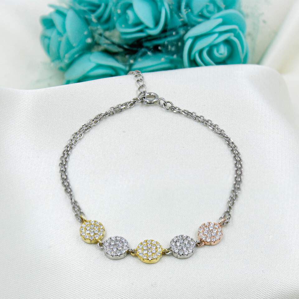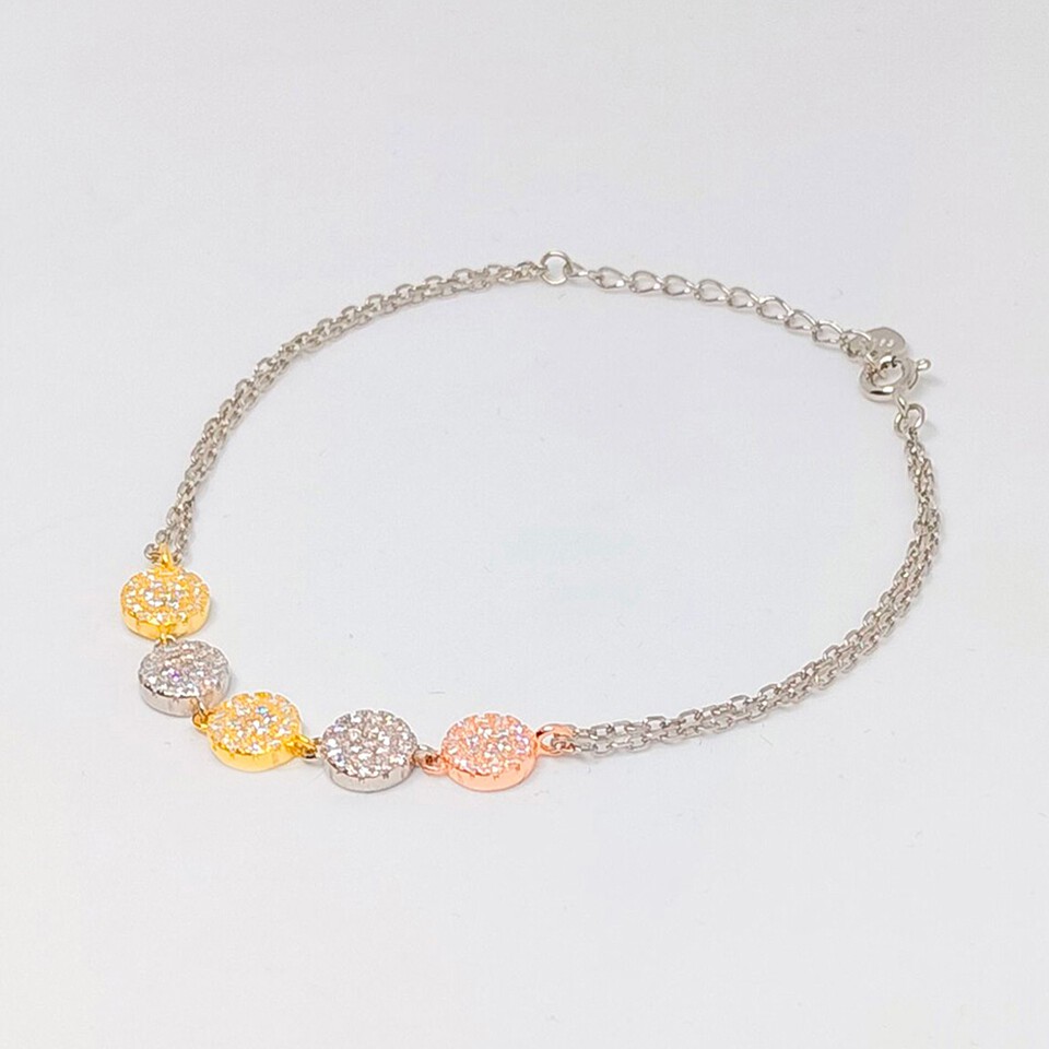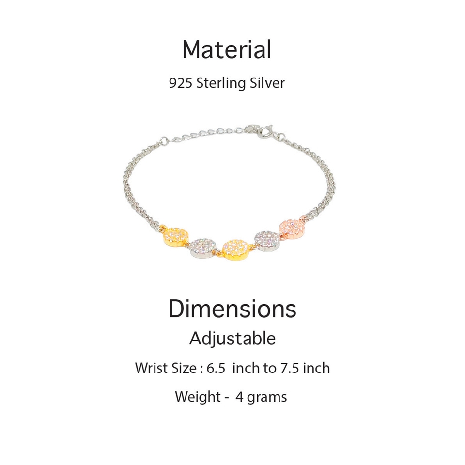 - This elegant, minimalist dainty bracelet is crafted from 925 Sterling Silver with yellow and rose gold plating, offering a timeless design. Designed for women, it fits wrist sizes between 6″ and 7.5″ and is slightly adjustable, features a secure clasp. Its sleek design makes it a versatile accessory for any occasion.