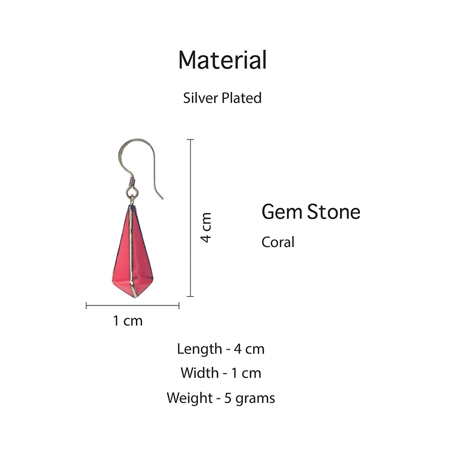 - Experience the charm of our Boho Fashion Coral Gemstone Drop Earrings, an exquisite handmade design crafted for women seeking affordable luxury. Featuring ethically sourced coral gemstones, these drop earrings not only radiate vibrant beauty but also promote inner peace. Each earring measures 4 cm x 1 cm and weighs just 5 grams, offering a lightweight yet striking addition to your look. The intricate craftsmanship by skilled artisans brings a unique touch to this boho-style piece, perfect for any occasion and a versatile addition to your fashion collection.