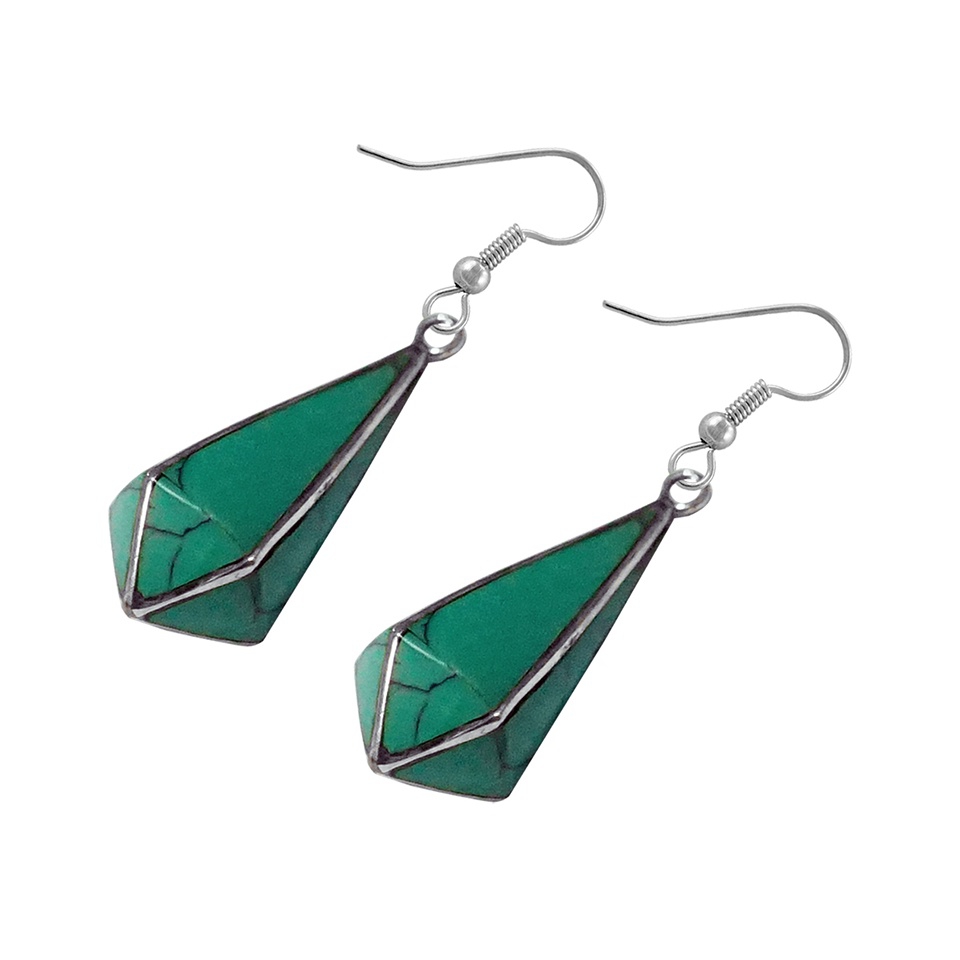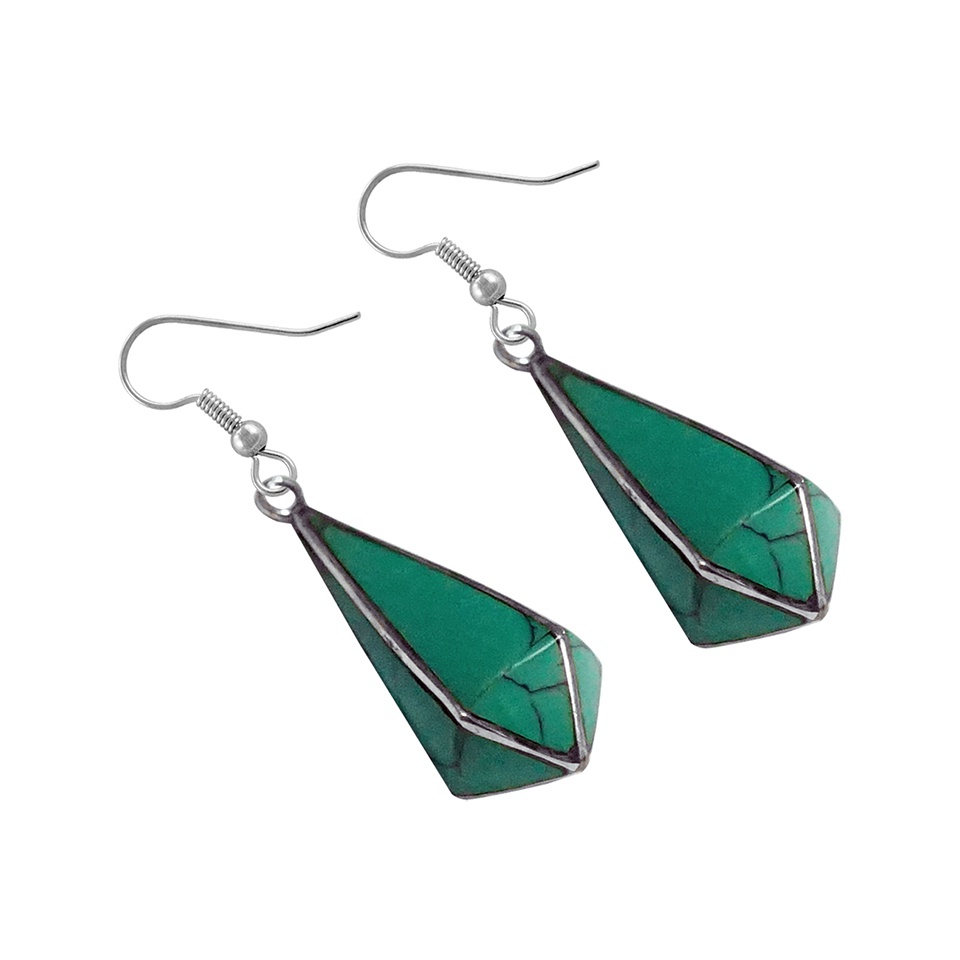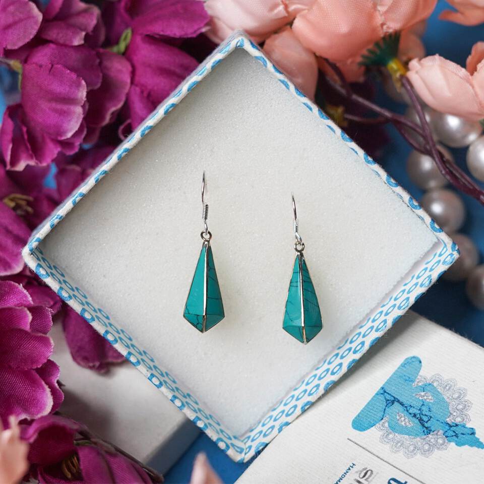 - Discover affordable luxury with our handmade Boho Fashion Earrings, designed exclusively for women who appreciate both style and meaning. These exquisite drop-dangle earrings feature ethically sourced compressed turquoise gemstones, known for promoting balance and healing energy. With dimensions of 4 cm by 1 cm and a weight of just 5 grams, these lightweight earrings are perfect for all-day wear. Crafted by skilled artisans using silver-plated brass, they showcase a stunning boho design that adds a fashionable, tribal-inspired flair to any outfit. Elevate your look with this unique piece of fashion jewelry, expertly handmade to reflect timeless beauty and conscious craftsmanship.