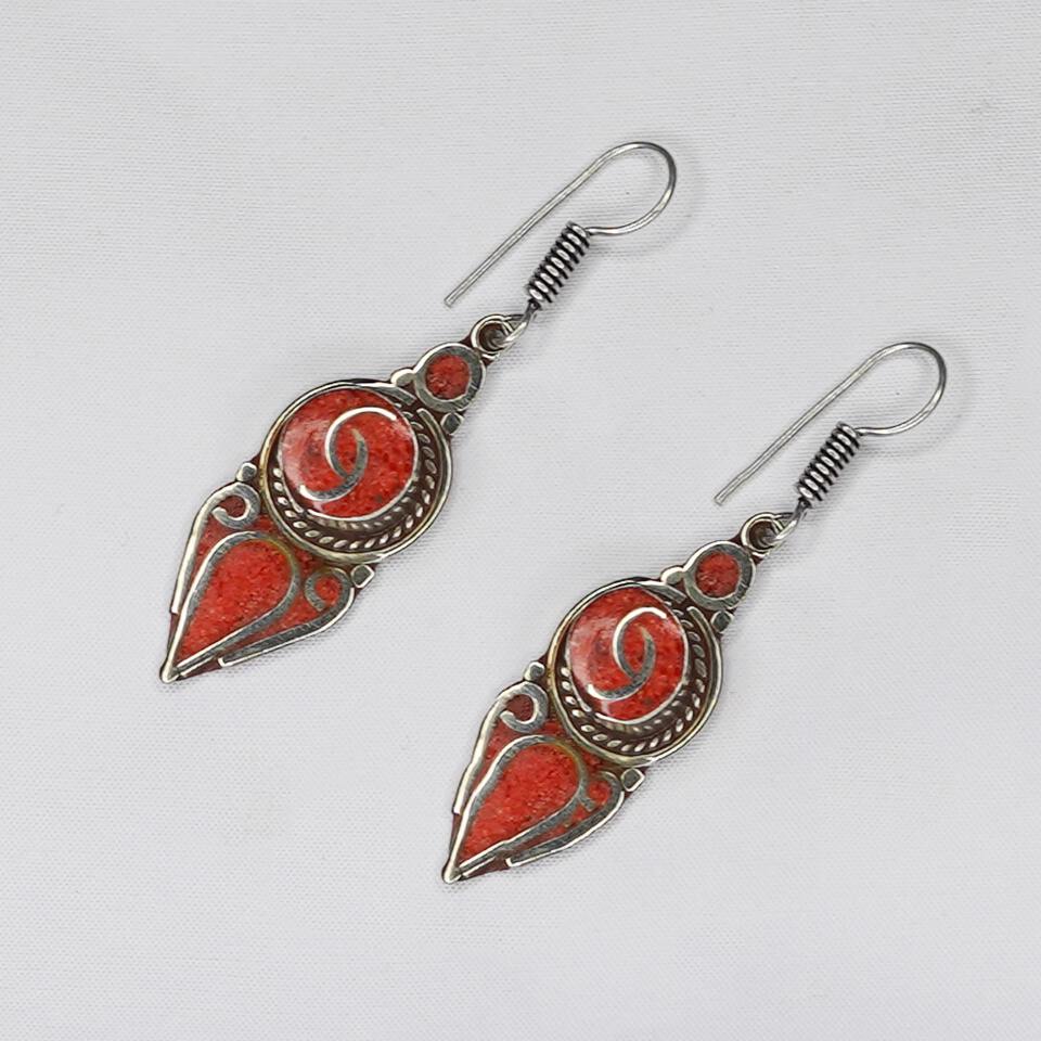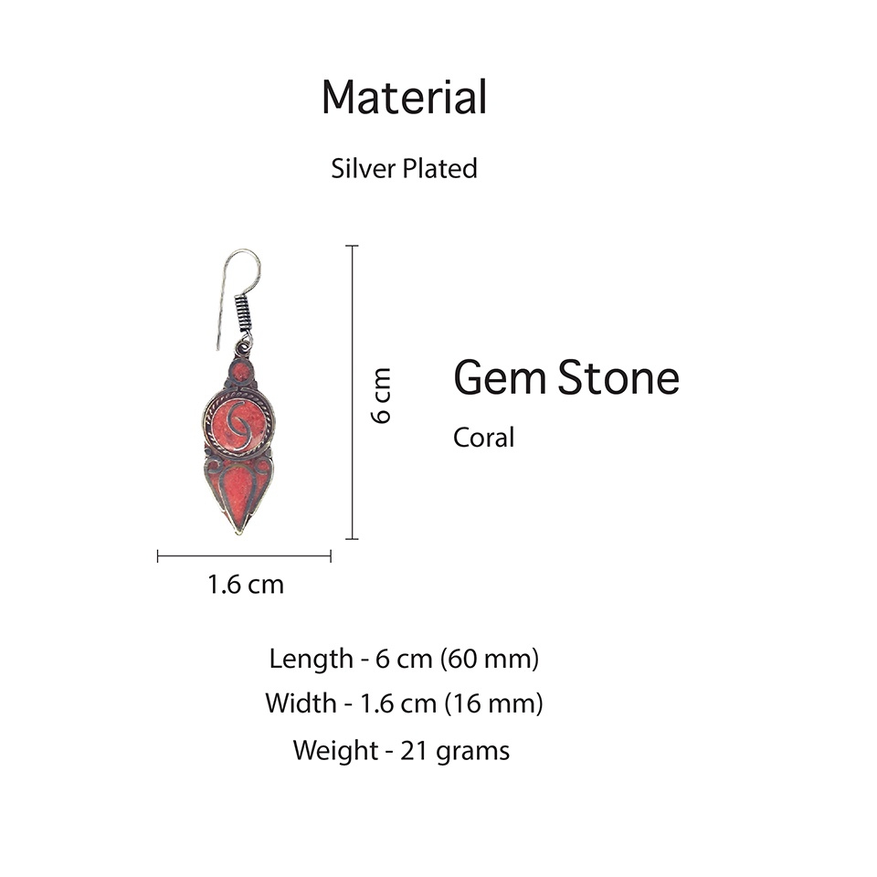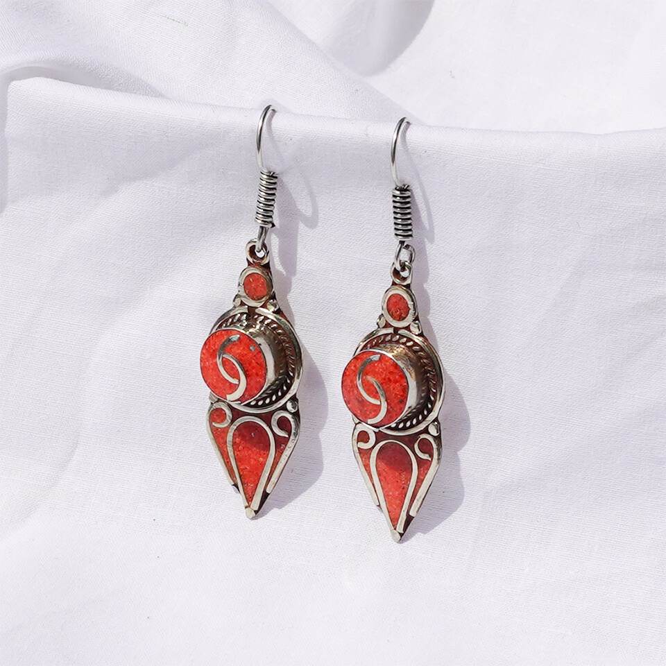 - Elevate your style with our exquisite Boho Fashion Handmade Jewelry Coral Gemstone Earrings, featuring ethically sourced compressed coral inlay that symbolizes creativity and vitality. Measuring 4.5 cm by 1.6 cm and weighing 21 grams, these drop earrings are perfect for women seeking affordable luxury infused with bohemian charm. Each piece is handcrafted by artisans and showcases fashion-forward design, complemented by hypoallergenic ear wires made from pure 925 sterling silver, ideal for sensitive ears. The silver-plated jewelry boasts a durable 2-micron coating of pure silver over brass, ensuring a radiant finish that reflects your unique personality.