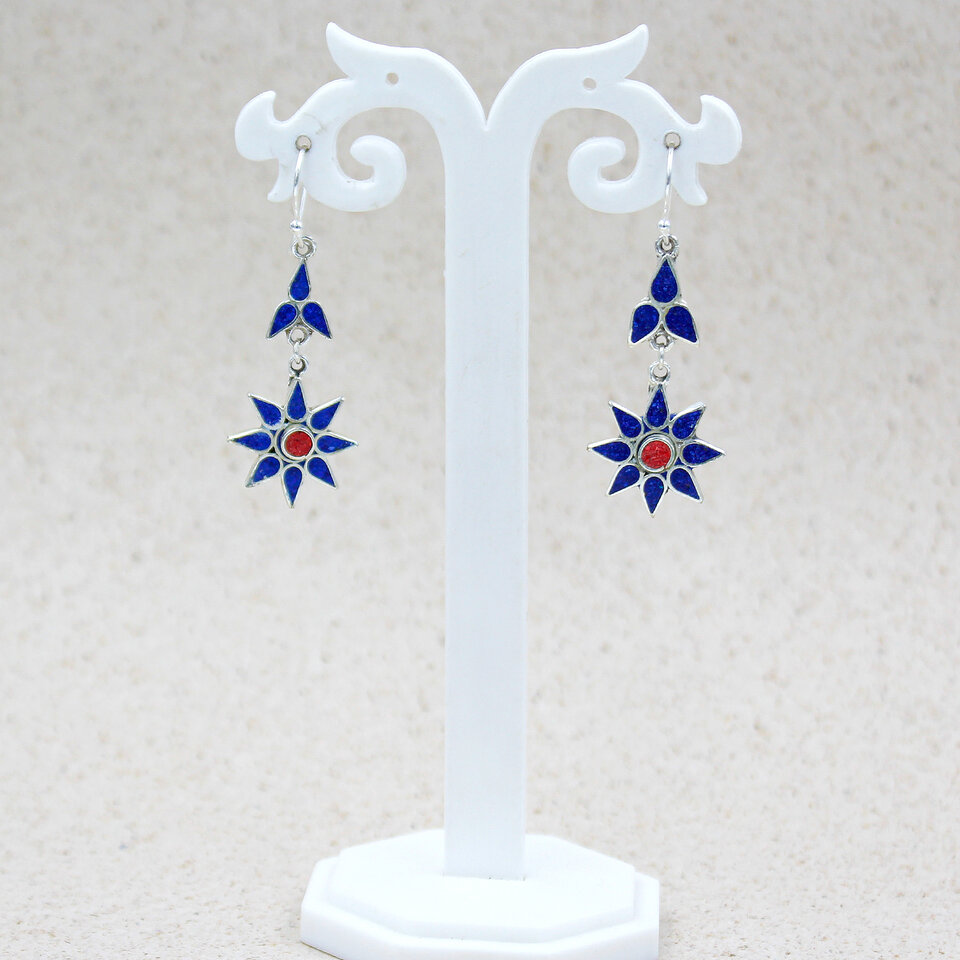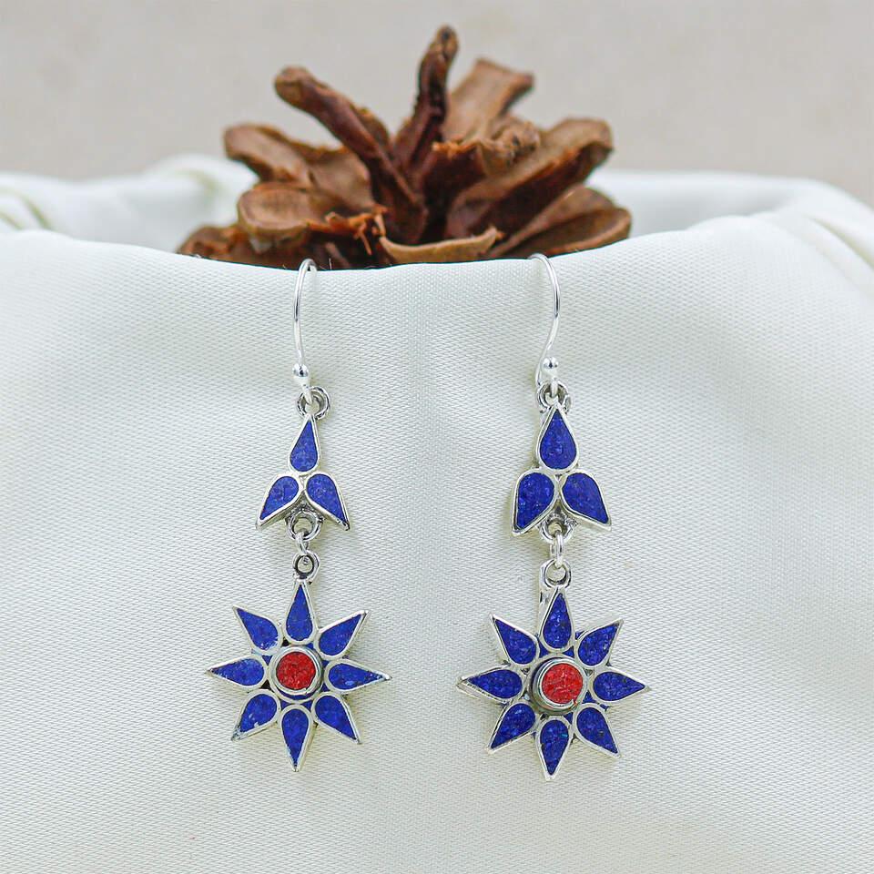 - Materials & Specs: Metal Type: 2-Micron Silver Plated Brass (Hypoallergenic) // Gemstone: Compressed Lapis Lazuli & Coral // Style: Boho // Occasion: Party, Anniversary, Gift, Casual