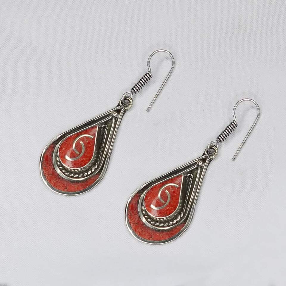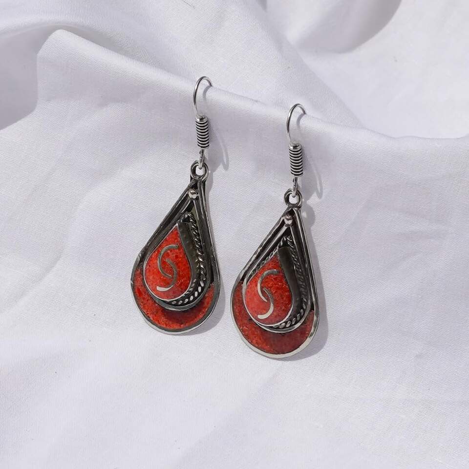 • Elevate your bohemian style with our exquisite Coral Gemstone Drop Earrings, featuring ethically sourced compressed coral inlay that not only adds a vibrant touch but is also believed to bring tranquility and protection to the wearer. Handmade by artisans, these earrings boast a fashionable design, measuring 4.3 cm x 2.3 cm and weighing 24 grams. Crafted with hypoallergenic ear wires made from pure 925 sterling silver, they are perfect for sensitive ears, while the 2-micron silver plating ensures an affordable luxury experience for women seeking unique boho jewelry.