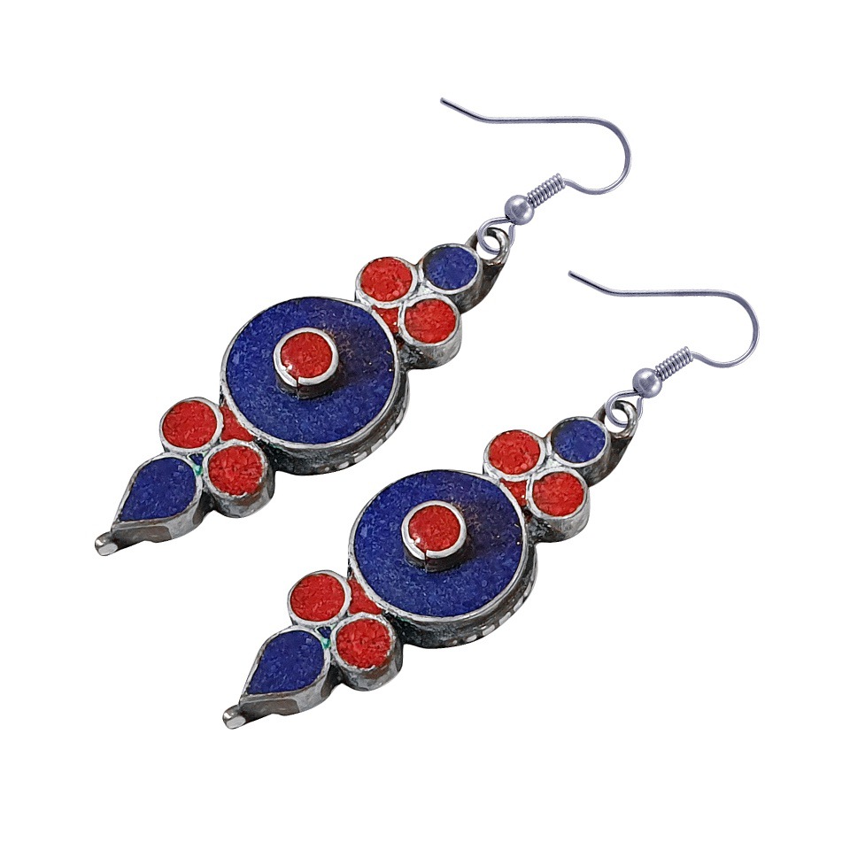 - Elevate your style with our handmade Boho Earrings featuring ethically sourced Lapis Lazuli gemstones, known for their calming and empowering properties. Each pair is crafted by skilled artisans, showcasing a beautiful blend of bohemian charm and affordable luxury. Measuring 5.2 cm x 1.2 cm and weighing just 6 grams, these fashionable drop earrings are designed for women who appreciate unique jewelry. The hypoallergenic ear wires made from pure 925 sterling silver ensure comfort for sensitive ears, while the 2-micron silver plating over brass guarantees lasting shine.