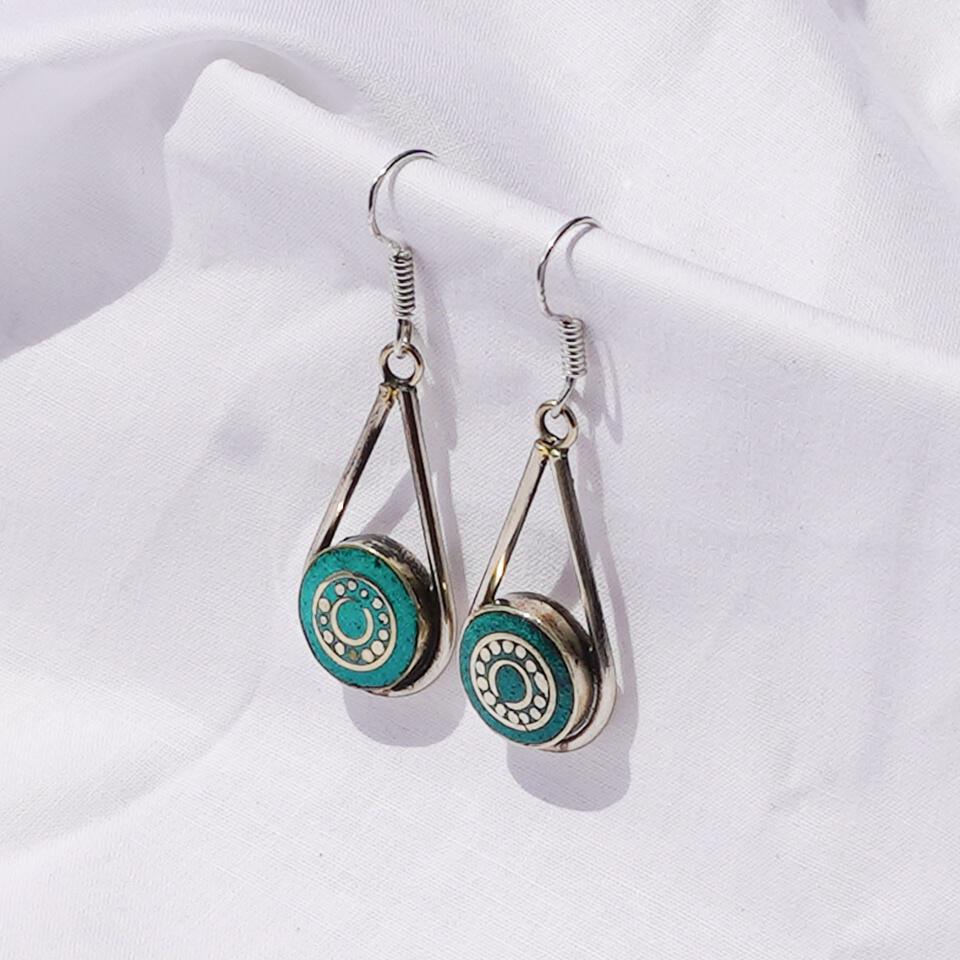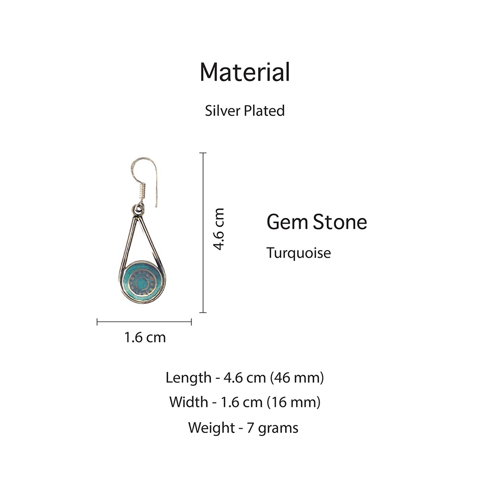 - Embrace bohemian charm with our handmade earrings featuring ethically sourced compressed turquoise inlay, a gemstone known for its protective properties. Measuring 4.6 cm x 1.6 cm and weighing just 7 grams, these stunning drop earrings are perfect for women seeking affordable luxury in their fashion choices. Crafted by skilled artisans, the earrings are designed with hypoallergenic ear wires made from pure 925 sterling silver, ensuring comfort for sensitive ears. Each piece showcases a beautiful blend of contemporary style and cultural artistry, making them a must-have addition to any boho jewelry collection.