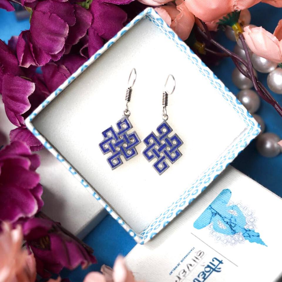 - Discover our Infinity Knot Design Handmade Boho Earrings, crafted by skilled artisans using ethically sourced Lapis Lazuli gemstones, known for promoting inner wisdom and self-awareness. The Infinity Knot design symbolizes eternal love and connection, making these exquisite earrings truly special. Measuring 4.5 cm in length and 2.0 cm in width, and weighing just 8 grams, they embody affordable luxury with their bohemian charm. Featuring hypoallergenic ear wires made from pure 925 sterling silver, they are perfect for sensitive ears, and the silver-plated design with a 2-micron coating of pure silver over brass ensures both style and durability. Embrace the allure of handmade fashion jewelry that celebrates individuality and ethical craftsmanship.