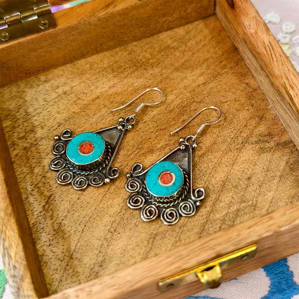 Be the first to review “Turquoise and Coral Gemstone Earrings Boho Jewelry Handmade Fashion”