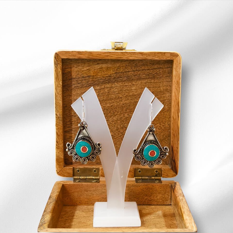 • Discover our stunning handmade Turquoise and Coral Gemstone Earrings, a perfect blend of bohemian charm and affordable luxury designed exclusively for women. Crafted by skilled artisans, these earrings feature ethically sourced compressed natural gemstones that symbolize protection and tranquility. With dimensions of 4 cm x 2.7 cm and a design of just 23 grams, they are the ideal fashion accessory to elevate any outfit while showcasing your unique style.