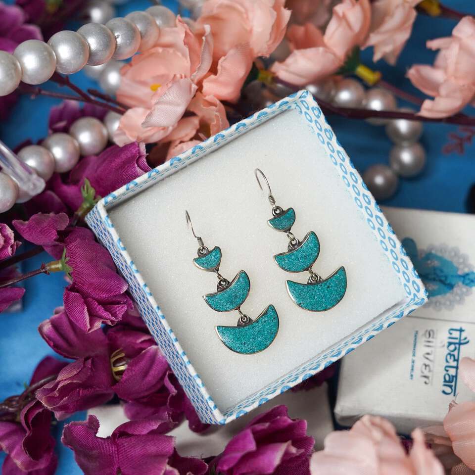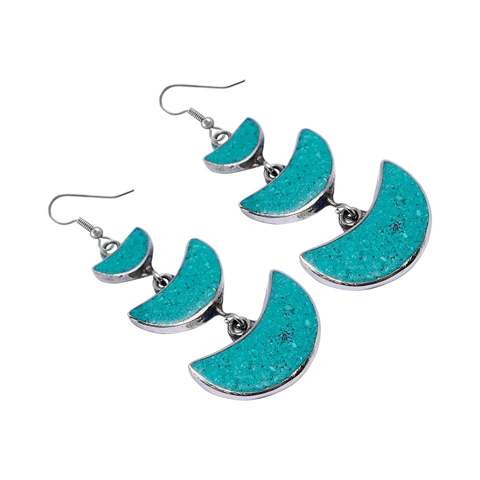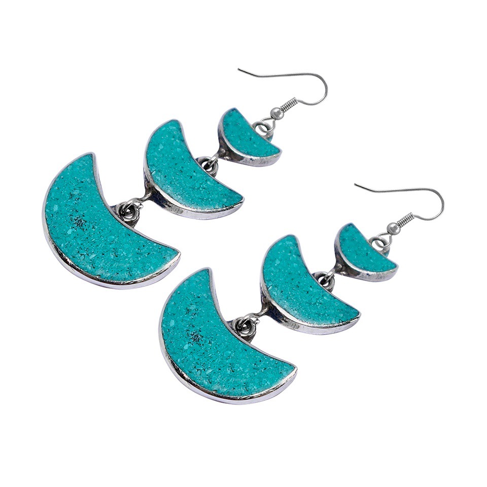 - Discover the enchanting allure of our handmade Silver-plated Turquoise Dangle Earrings, featuring a bohemian charm and modern contemporary design. Crafted by skilled artisans, these earrings showcase ethically sourced turquoise gemstones known for their protective benefits, making them the perfect accessory for women who appreciate affordable luxury. Measuring 6 cm in length and 2 cm in width, and weighing just 8 grams, these earrings feature hypoallergenic ear wires made from pure 925 sterling silver, ensuring comfort for sensitive ears. Elevate your fashion statement with this exquisite piece of boho jewelry!