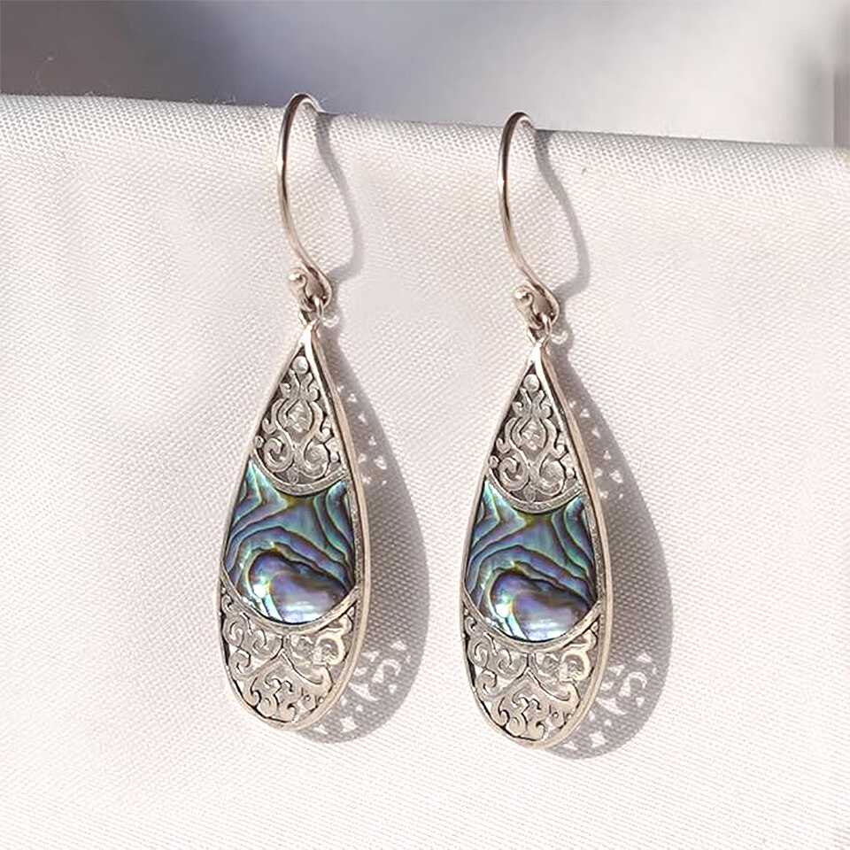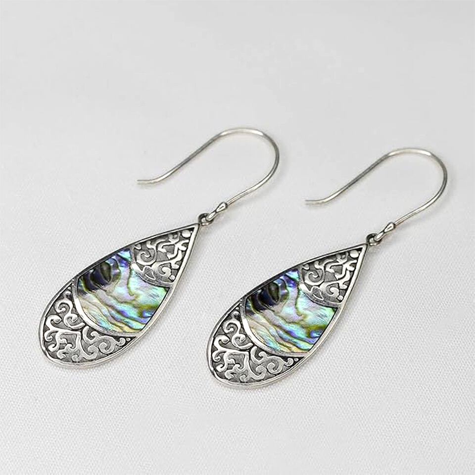 - Elevate your style with these handmade drop earrings featuring stunning Abalone Shell gemstones. Crafted from luxurious 925 sterling silver, these earrings boast a unique designer look that perfectly blends modern elegance with a minimalistic charm. With dimensions of 5 cm in length and 1.5 cm in width, these dainty statement earrings weigh just 5 grams, making them ideal for everyday wear. The captivating colors of the natural Abalone Shell, known for its healing properties, add a vibrant touch to your jewelry collection. These earrings are perfect for the fashion-forward woman who appreciates handmade, statement jewelry.