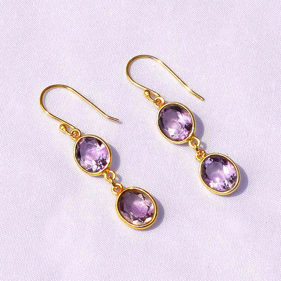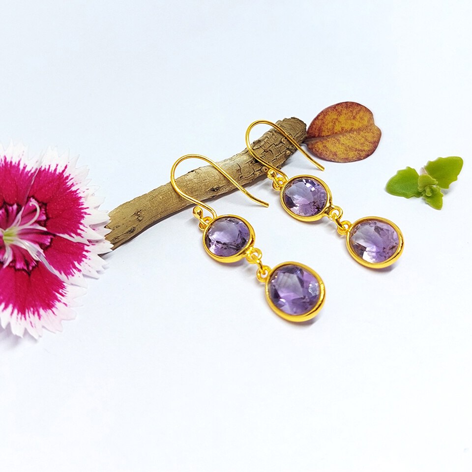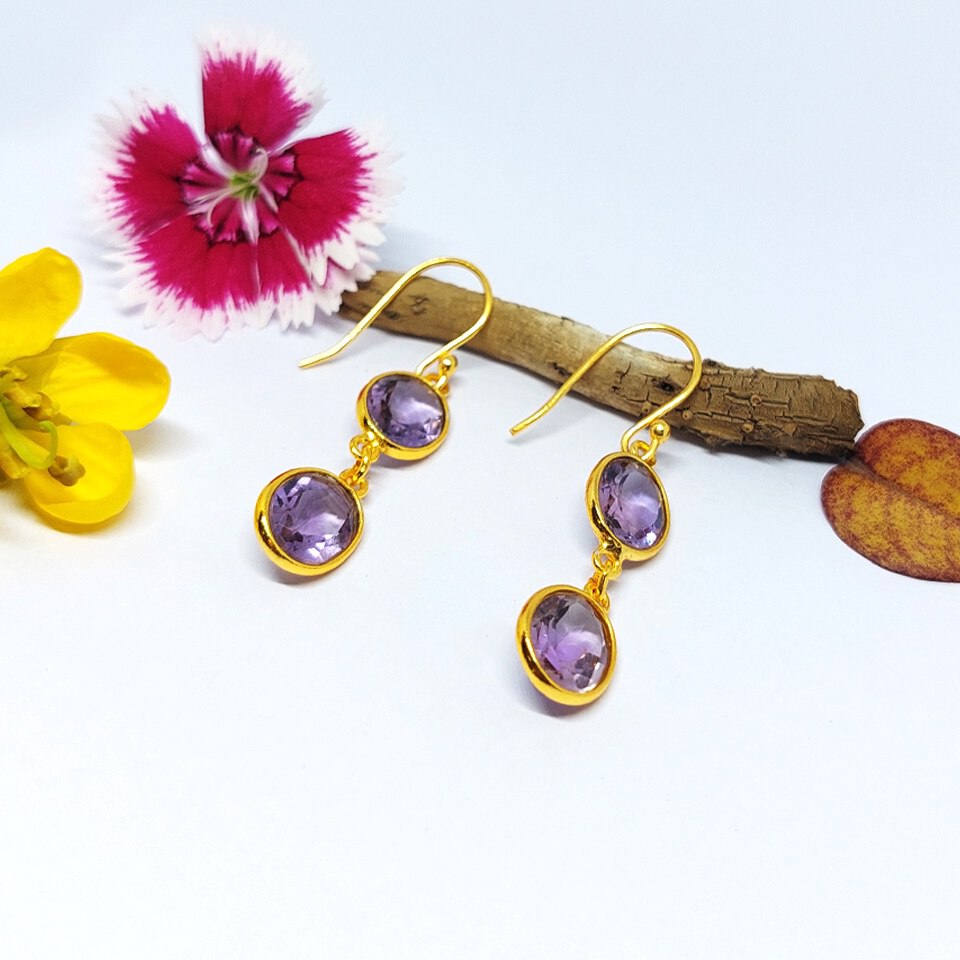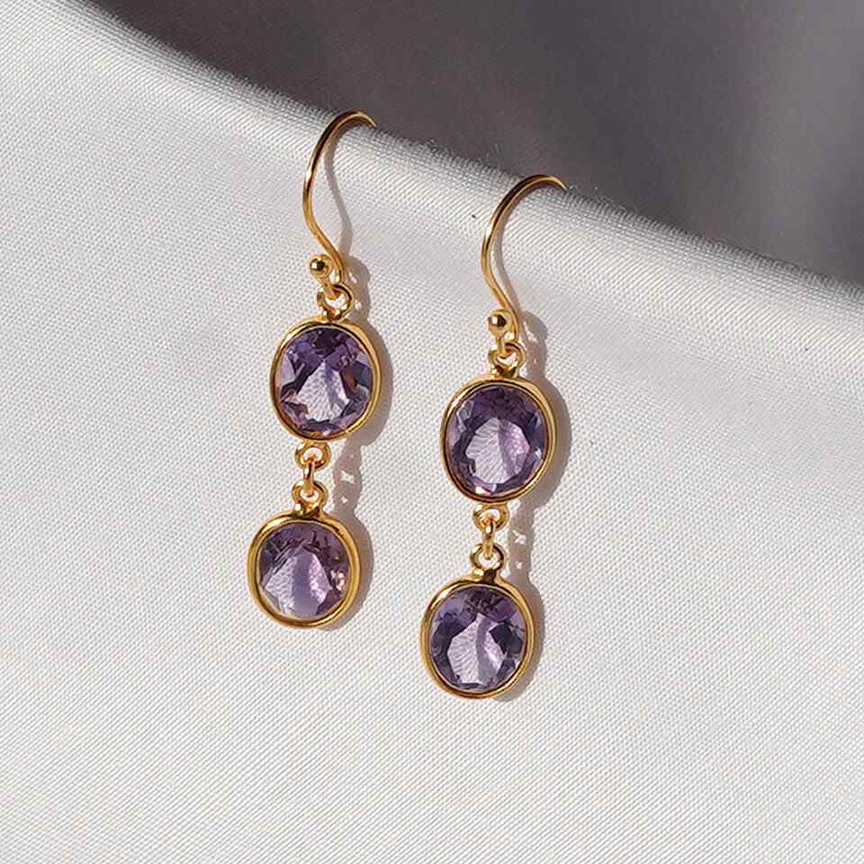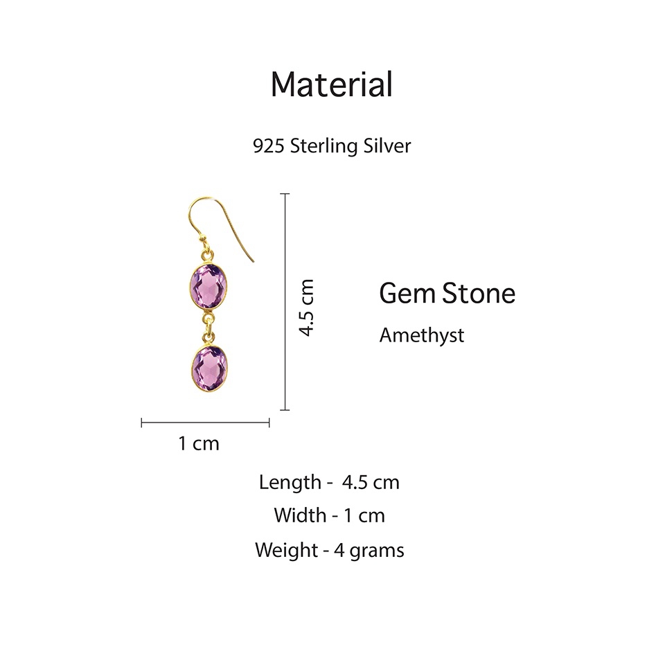 - Crafted from 18ct gold-plated 925 sterling silver, these hypoallergenic, nickel-free, and lead-free earrings offer comfort and elegance for sensitive skin. With dimensions of 4.5 cm in length, 1 cm in width, and a weight of 4 grams, they are designed as graceful drop dangle earrings, perfect for both everyday wear and statement styling. Exclusively for women, this luxurious, minimalistic jewelry features a genuine purple amethyst gemstone?the birthstone of February, symbolizing protection and tranquility. The deep purple hue of the amethyst adds a sophisticated statement touch, making these unique designer earrings ideal for modern, elegant outfits.