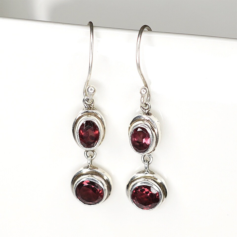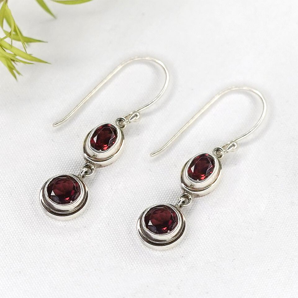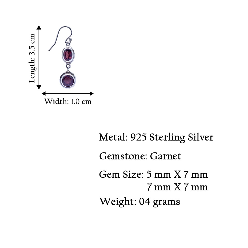 - Embrace luxury with our Handmade 925 Sterling Silver Drop Dangle Earrings, featuring an elegant tribal-inspired design and intricate filigree crafted by skilled artisans. These unique modern earrings for women boast genuine Mozambique Garnet stones, adding a dainty yet statement-making allure with their rich red color. Designed with a fish hook back finding, the earrings are lightweight at 4 grams and sized at 3.5 cm x 1 cm. Perfect for daily wear or special events, they showcase an eye-catching blend of minimalistic and contemporary fashion. Garnet, the natural birthstone of January, symbolizes protection and vitality, making these earrings both beautiful and meaningful.