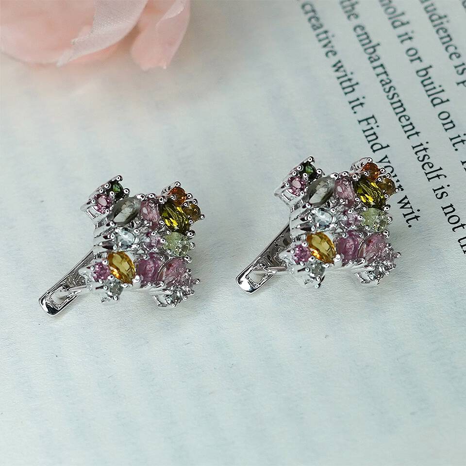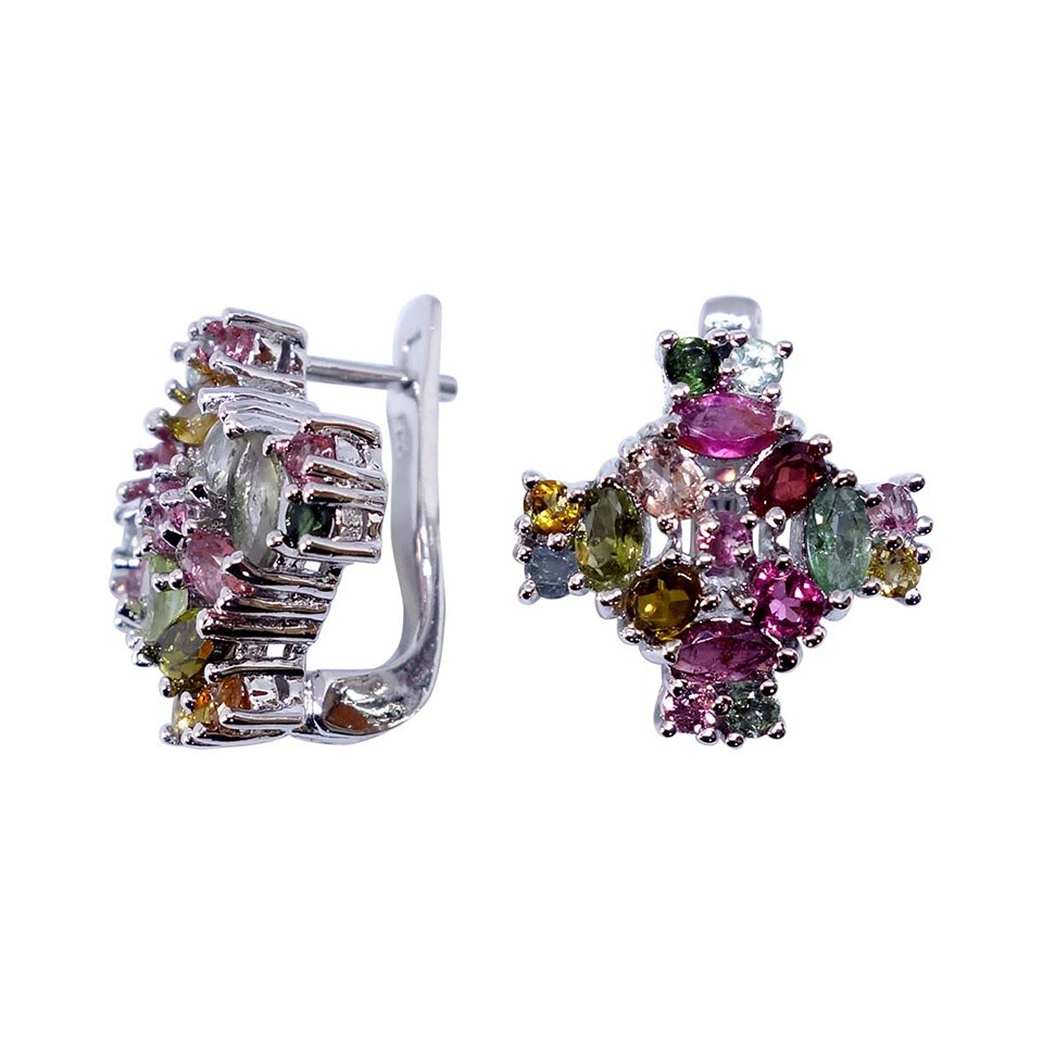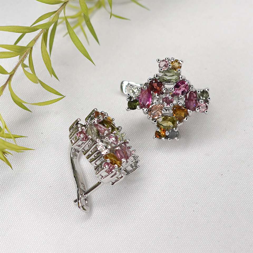 Handmade 925 Sterling Silver Stud Earrings for Women Elegant Luxury Jewelry Multi Tourmaline Gemstone October Birthstone