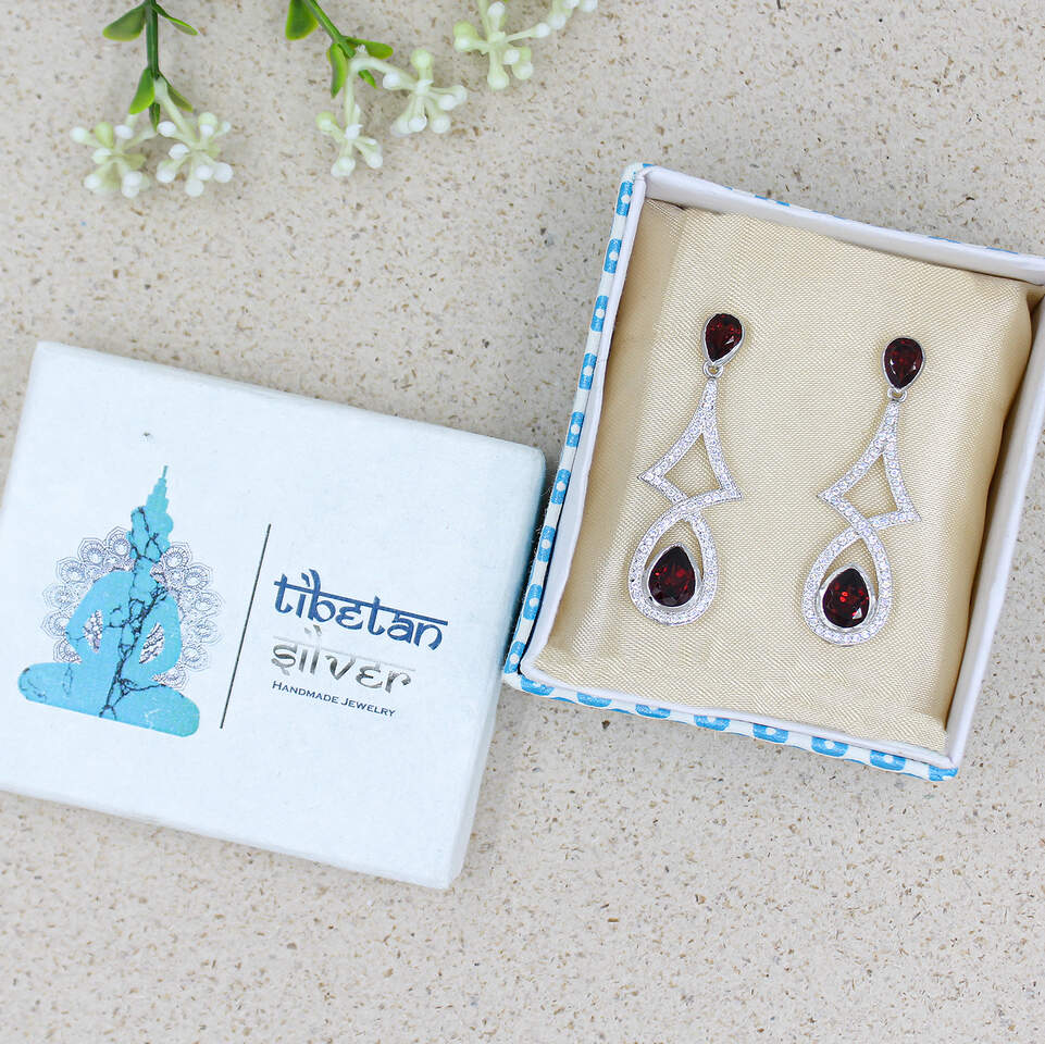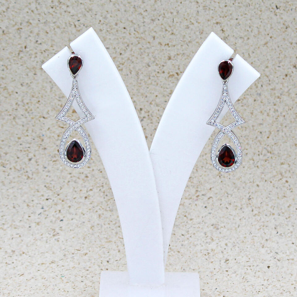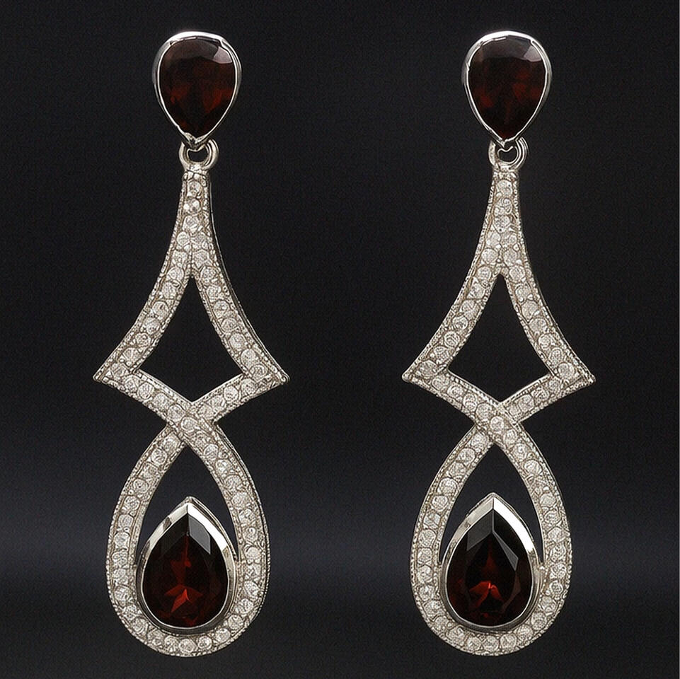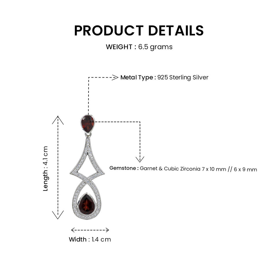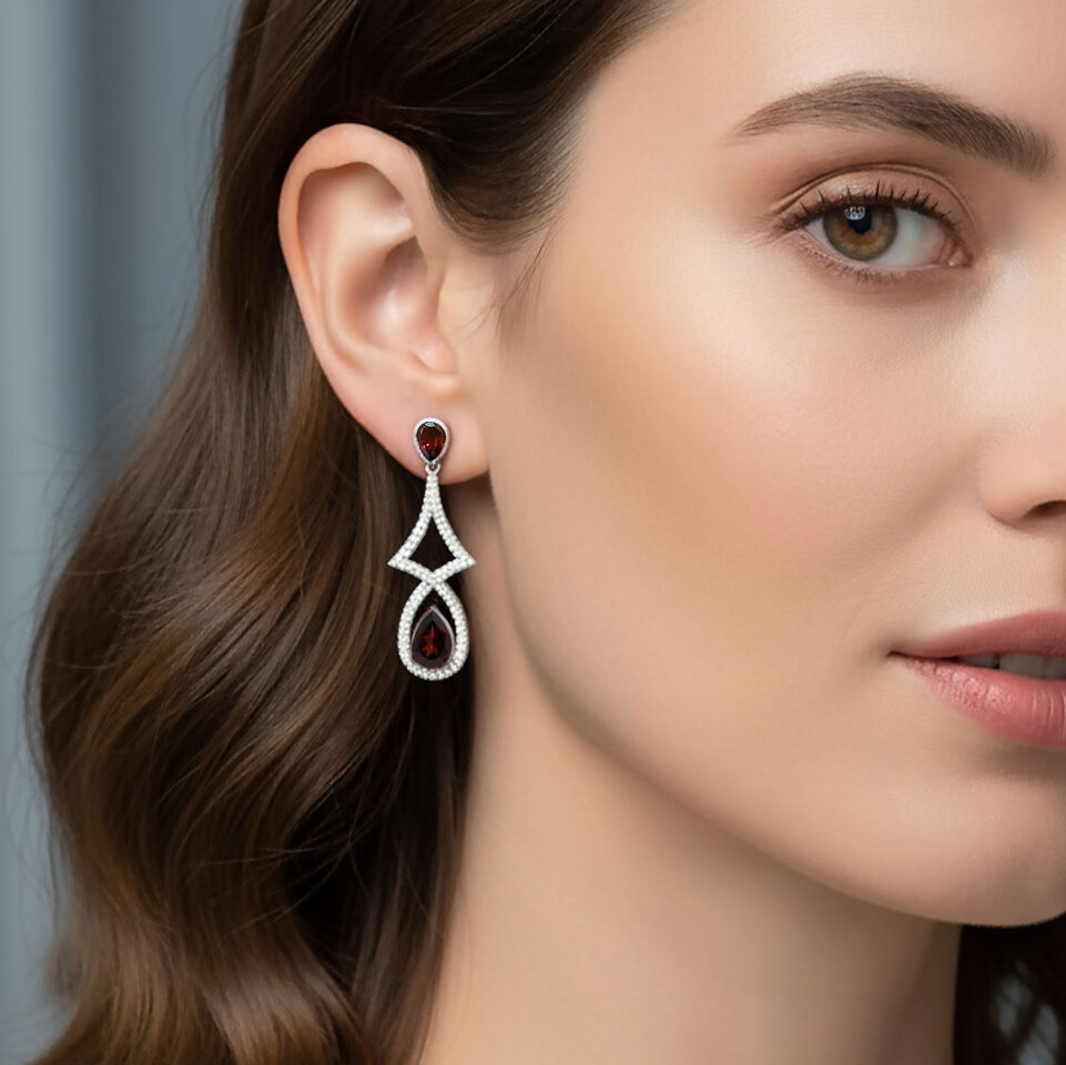 - Garnet Elegance: Features two pear-cut natural garnet gemstones in deep red hues, along with CZ stone accents for exceptional sparkle and brilliance, enhancing the luxurious look.