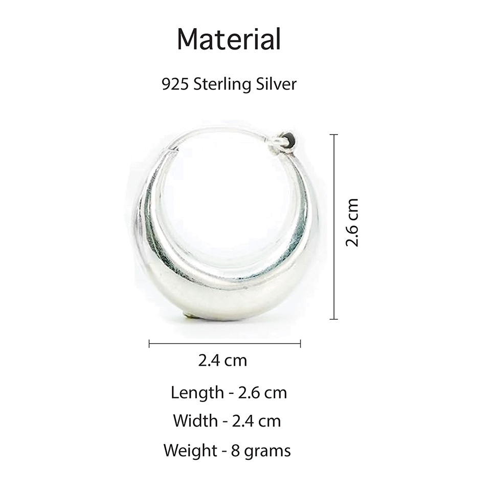 - Crafted from high-quality 925 sterling silver, these handmade hoop earrings are a beautiful example of modern minimalistic design. With dimensions of 2.6 cm x 2.4 cm and a weight of just 8 grams, they are lightweight and perfect for all-day wear. Designed for women who appreciate luxury, elegance, and contemporary fashion, these earrings are an ideal accessory for any occasion. Their modern minimalist aesthetic adds a touch of sophistication to any outfit, whether you’re dressing up for an event or enhancing your everyday style. The earrings feature a secure hinged hoop closure for a comfortable fit, making them both practical and stylish.