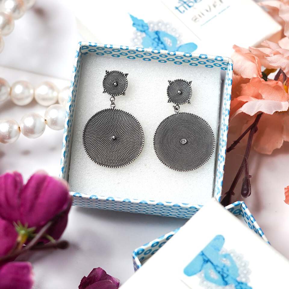- Elevate your style with our handmade 925 sterling silver drop earrings, meticulously crafted with a perfect blend of ethnic tribal and modern contemporary designs. Measuring 5 cm x 3 cm and weighing just 9 grams, these lightweight earrings feature a hypoallergenic push-back finding, ensuring comfort for sensitive ears. Ideal for women who appreciate luxury and elegance in their accessories, these earrings are a stunning addition to any jewelry collection.