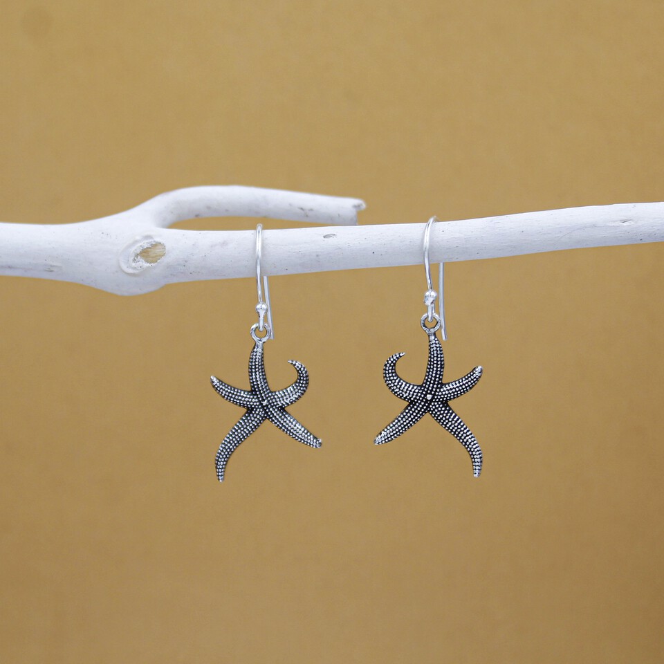 - Elegant and modern, these handcrafted 925 sterling silver starfish-shaped drop earrings are designed for women who love minimalistic luxury. With dimensions of 3 cm x 2.5 cm and weighing just 6 grams, these lightweight earrings feature a contemporary design perfect for any occasion. Made with hypoallergenic materials, these fish hook earrings are ideal for sensitive ears and offer a timeless, sophisticated style.