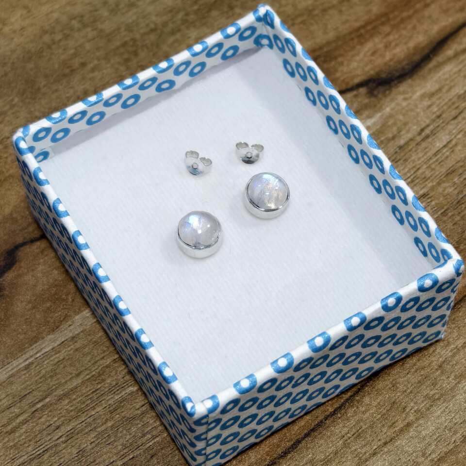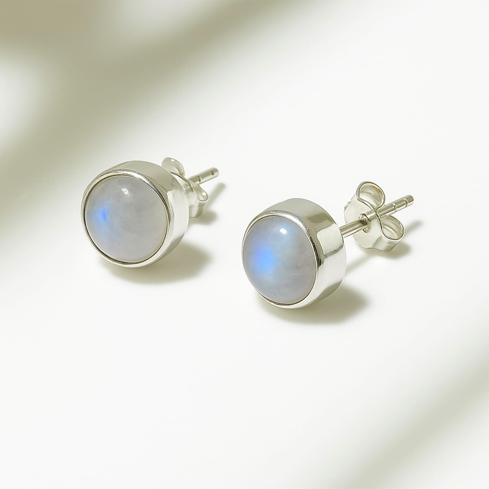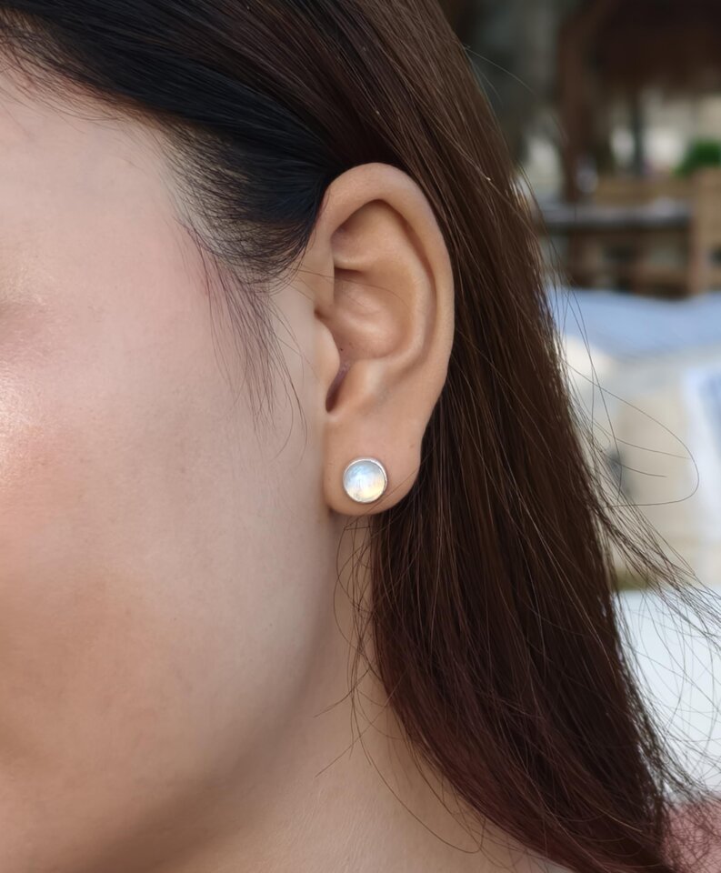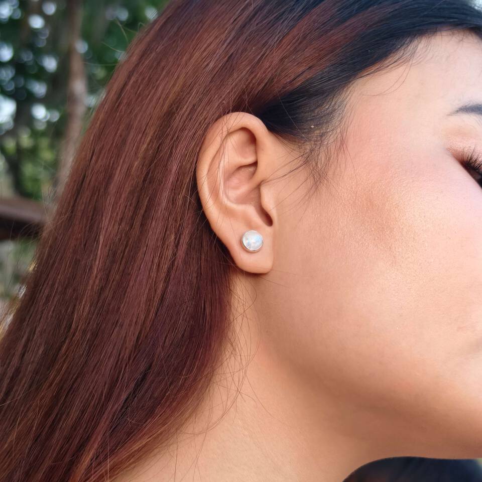 - Elevate your style with our luxurious yet affordable 925 Sterling Silver Stud Earrings, featuring ethically sourced 8mm round White Moonstone gemstones. Known for promoting emotional balance and serenity, these contemporary earrings beautifully blend minimalism with modern flair. Weighing just 3 grams, they offer comfort and durability, making them the perfect accessory for women seeking elegance in their everyday wear.