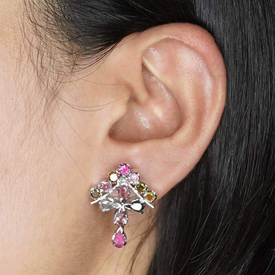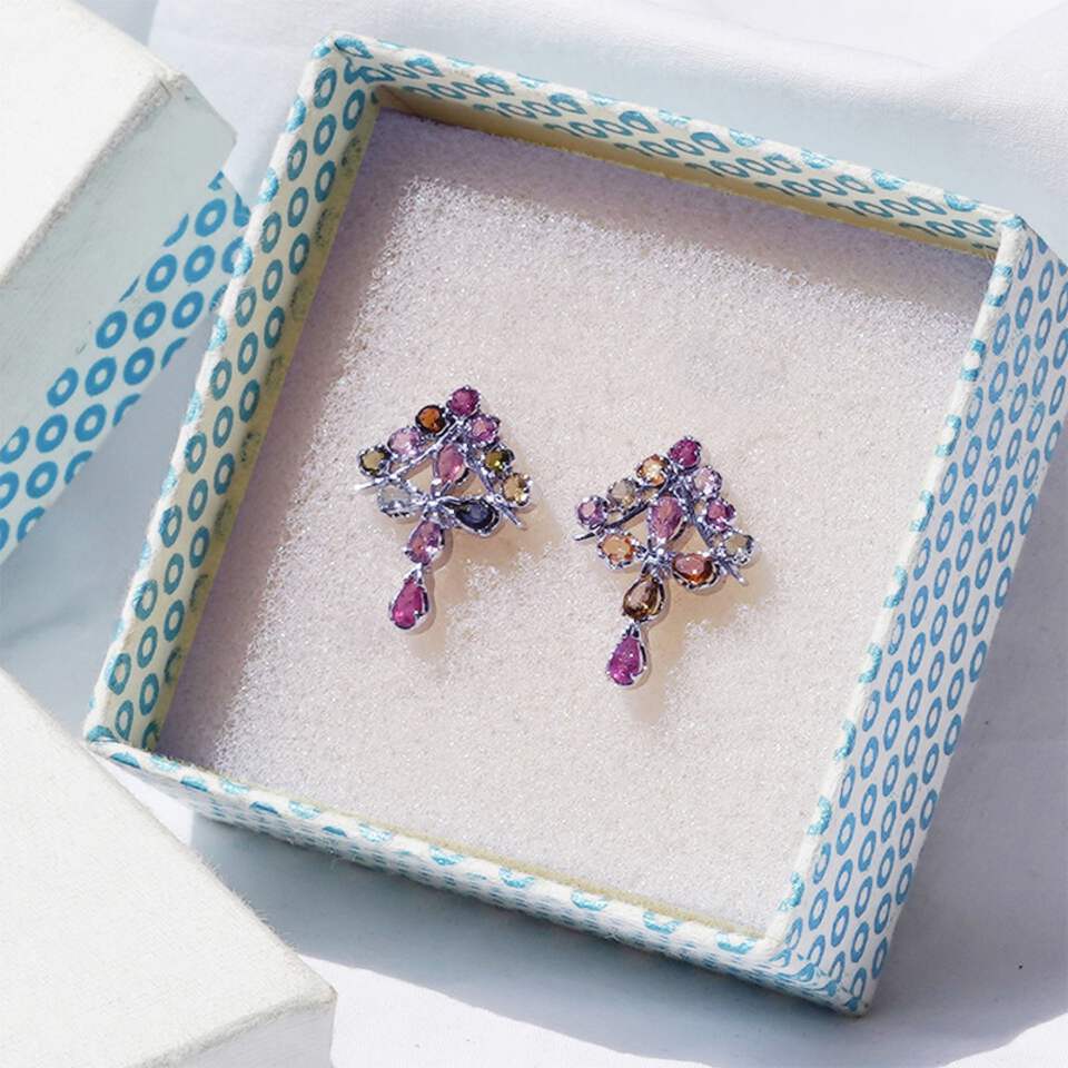 • Elevate your style with our stunning Designer 925 Sterling Silver Tourmaline Stud Earrings, perfect for the modern woman seeking luxury at an affordable price. Crafted with ethically sourced, vibrant multi color tourmaline gemstones in a contemporary shape, these earrings measure 26 x 20 mm and weigh just 6 grams. Wearing tourmaline is said to promote emotional balance, making these earrings not only a fashion statement but also a source of positive energy in your life.