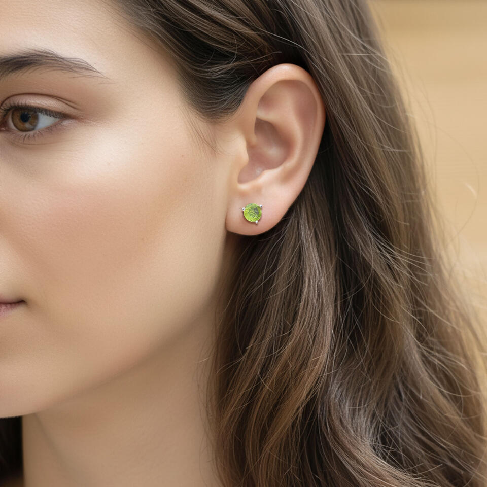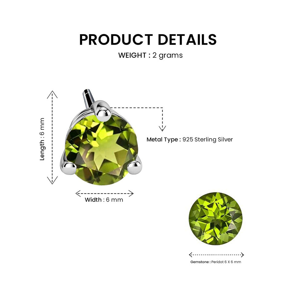 - Elevate your style with our stunning handmade Peridot gemstone stud earrings, crafted from ethically sourced 925 sterling silver. These modern contemporary earrings feature vibrant green, round-shaped Peridot stones set in a prong design, enhancing your look while bringing positive energy and abundance into your life. With dimensions of 6×6 mm and a lightweight design of just 2 grams, these luxury yet affordable pieces are perfect for any woman looking to make a statement.