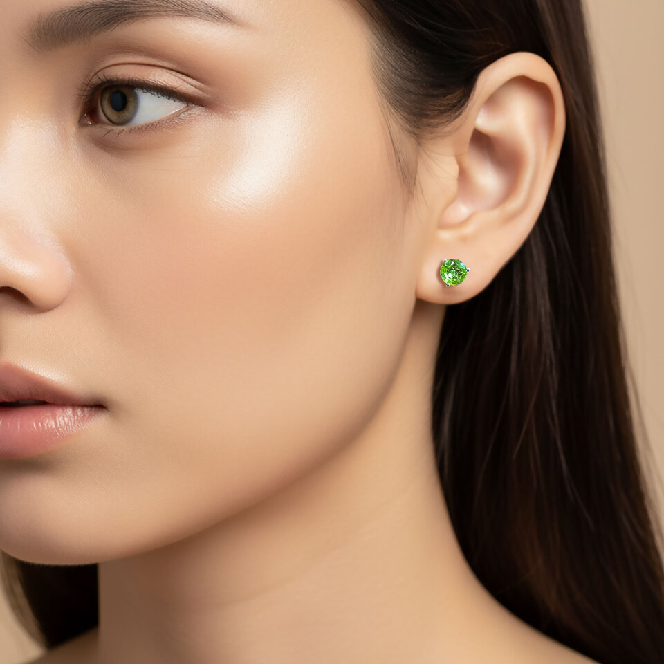Handmade Fashion Jewelry Peridot Gemstone August Birth Month 925 Sterling Silver Stud Earrings