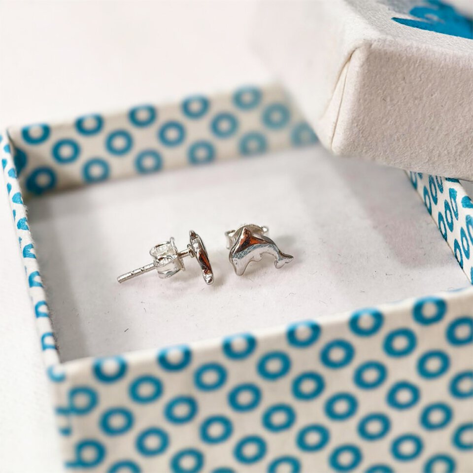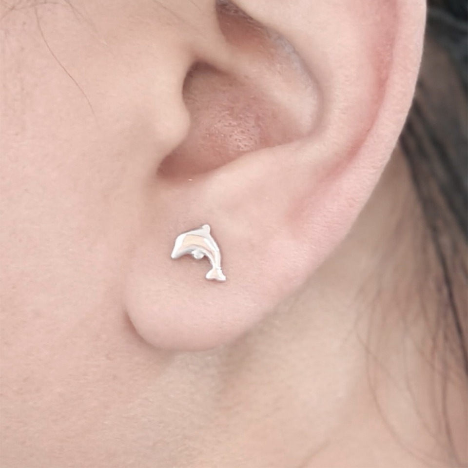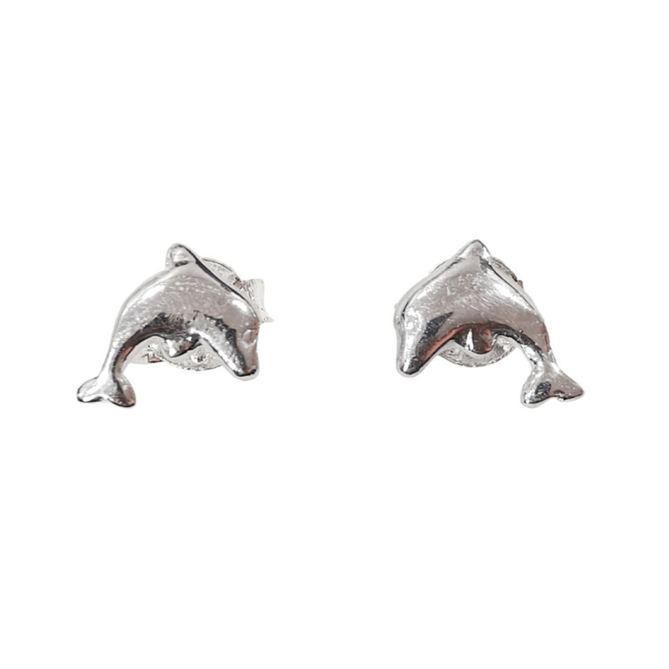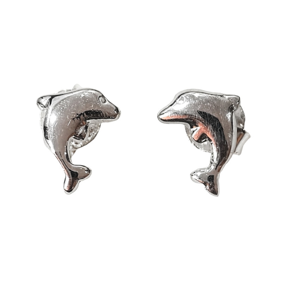 - These 925 sterling silver handmade stud earrings feature a charming dolphin design, capturing the playful elegance of these beloved marine creatures. Crafted with attention to detail, the earrings are both beautiful and durable, offering a polished finish that resists tarnishing. Lightweight and perfect for everyday wear, they are a versatile and timeless addition to any jewelry collection. Each earring weighs 2 grams and measures 8mm x 7mm, making them a delightful choice for dolphin lovers of all ages.