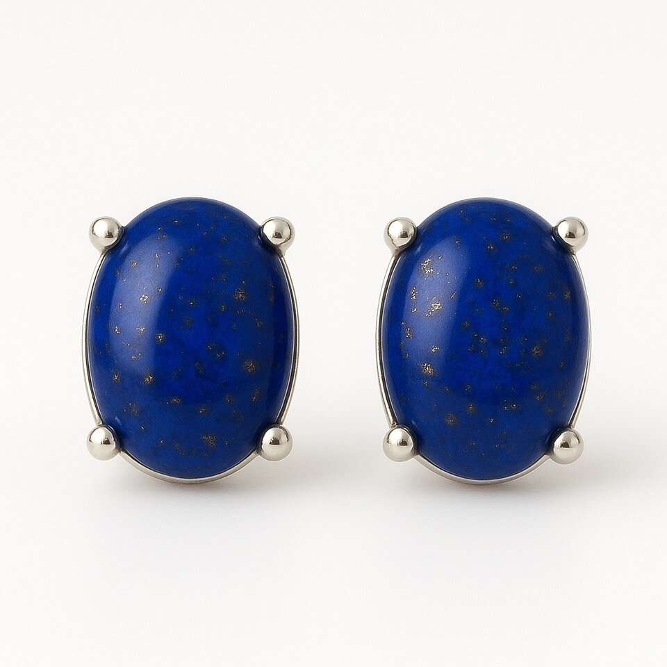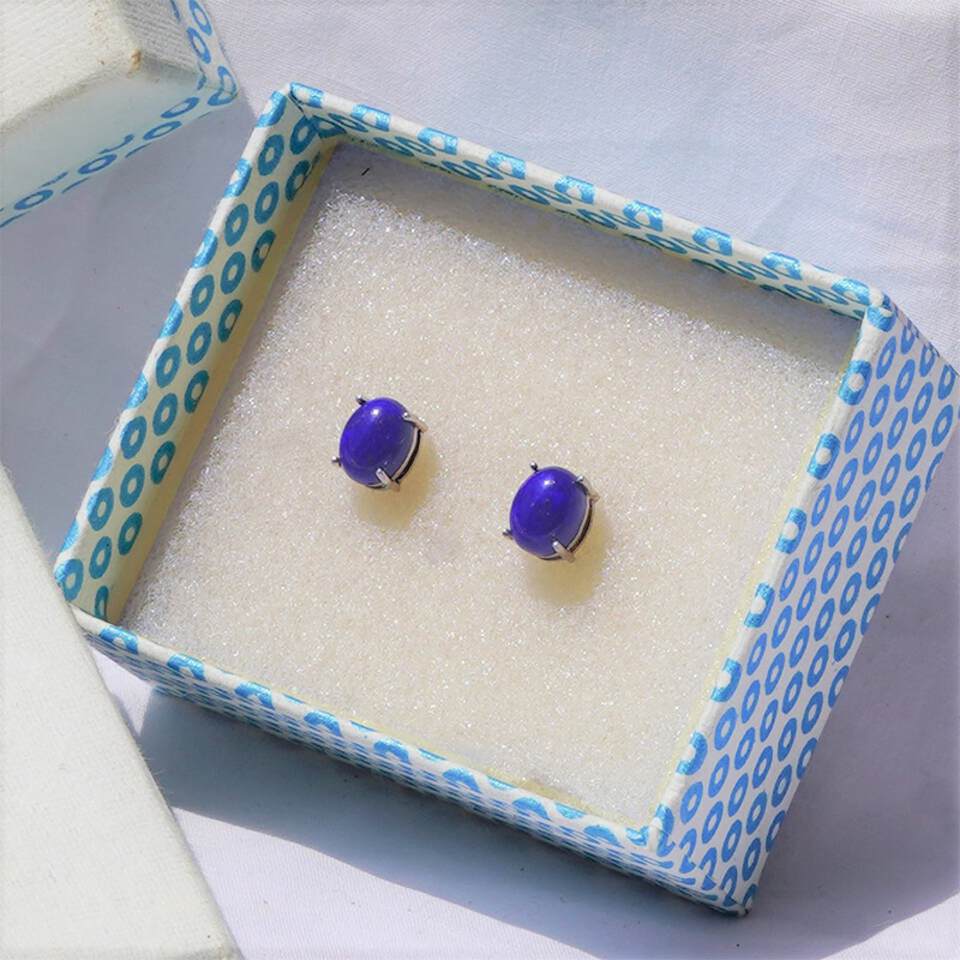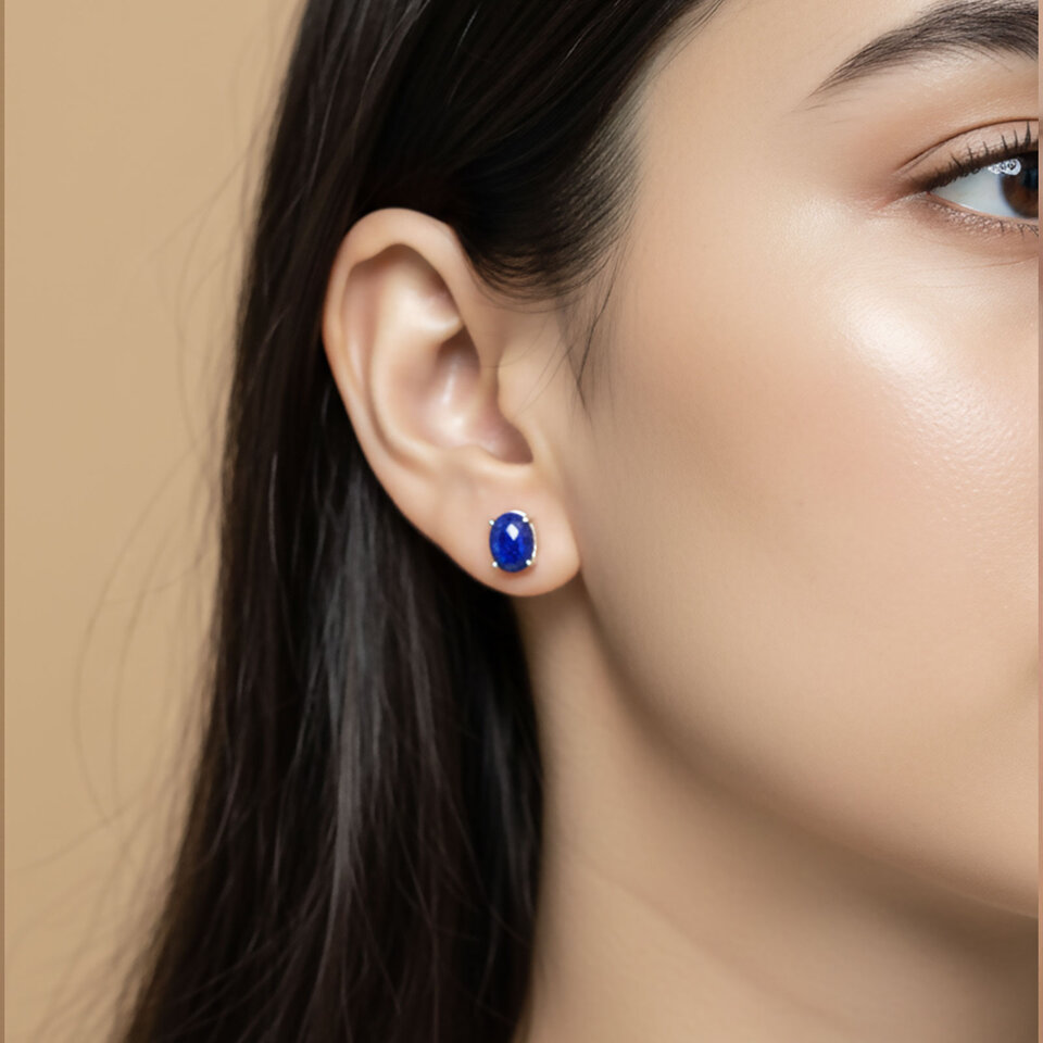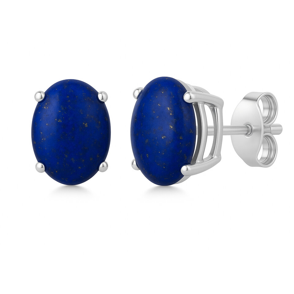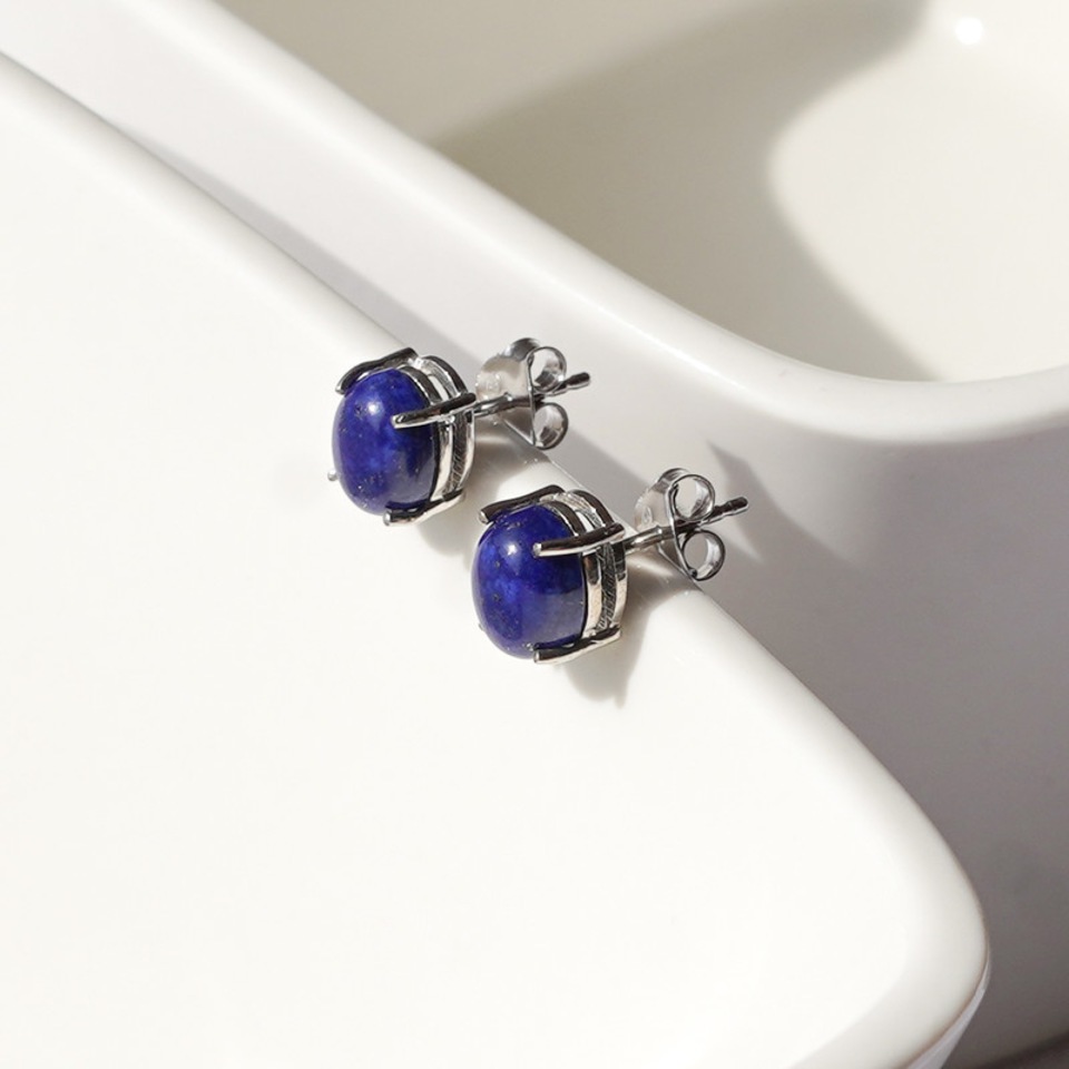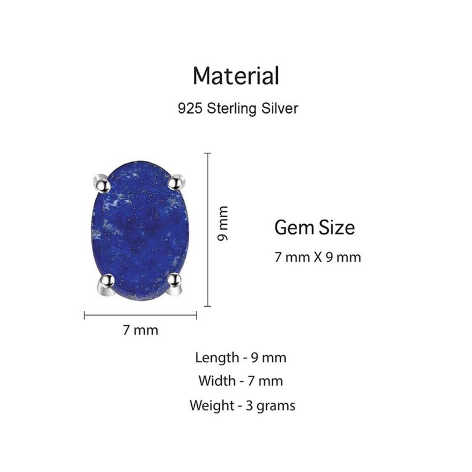 - Elevate your style with our modern and minimalistic Lapis Lazuli Gemstone Stud Earrings, expertly crafted in ethically sourced 925 sterling silver. Measuring 9 mm in length and 7 mm in width, with a weight of just 3 grams, these lightweight earrings feature a oval Lapis Lazuli gemstone in a secure prong setting. Known for its calming and healing properties, the deep blue color of the Lapis Lazuli adds a touch of luxury to your affordable jewelry collection, making it the perfect accessory for women who appreciate contemporary design.