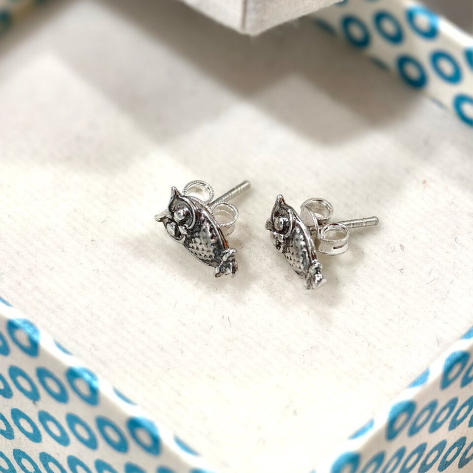 - Discover the perfect blend of elegance and charm with our Owl Design 925 Sterling Silver Handmade Stud Earrings. Crafted from high-quality sterling silver, these earrings feature intricate details like expressive eyes and feathered wings, offering durability and a polished finish that resists tarnishing. Lightweight and easy to wear, they add a subtle yet striking touch to any outfit. Measuring 11 mm x 6 mm and weighing just 2 grams, these earrings are the perfect blend of sophistication and mystique, a timeless addition to your own collection.