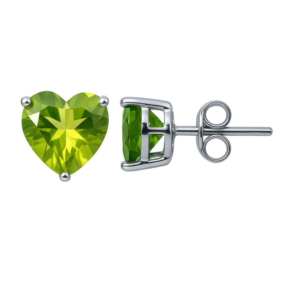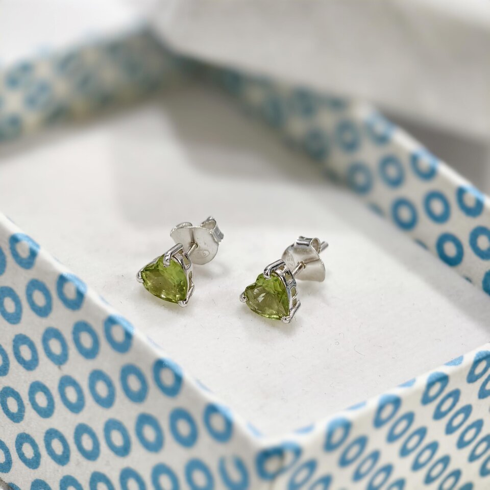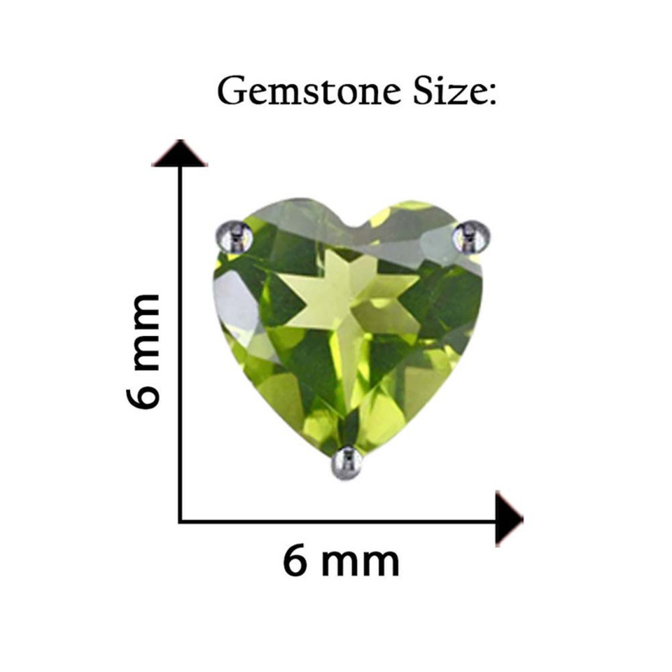 - Elevate your jewelry collection with our stunning handmade Peridot heart-shaped stud earrings, crafted from ethically sourced 925 sterling silver. With a size of 6×6 mm and a lightweight design of just 2 grams, these luxury affordable earrings showcase the vibrant green hues of the Peridot gemstone, known for its ability to bring harmony and positive energy to the wearer. Perfectly tailored for modern contemporary women, these earrings make a statement without compromising on style or ethics.