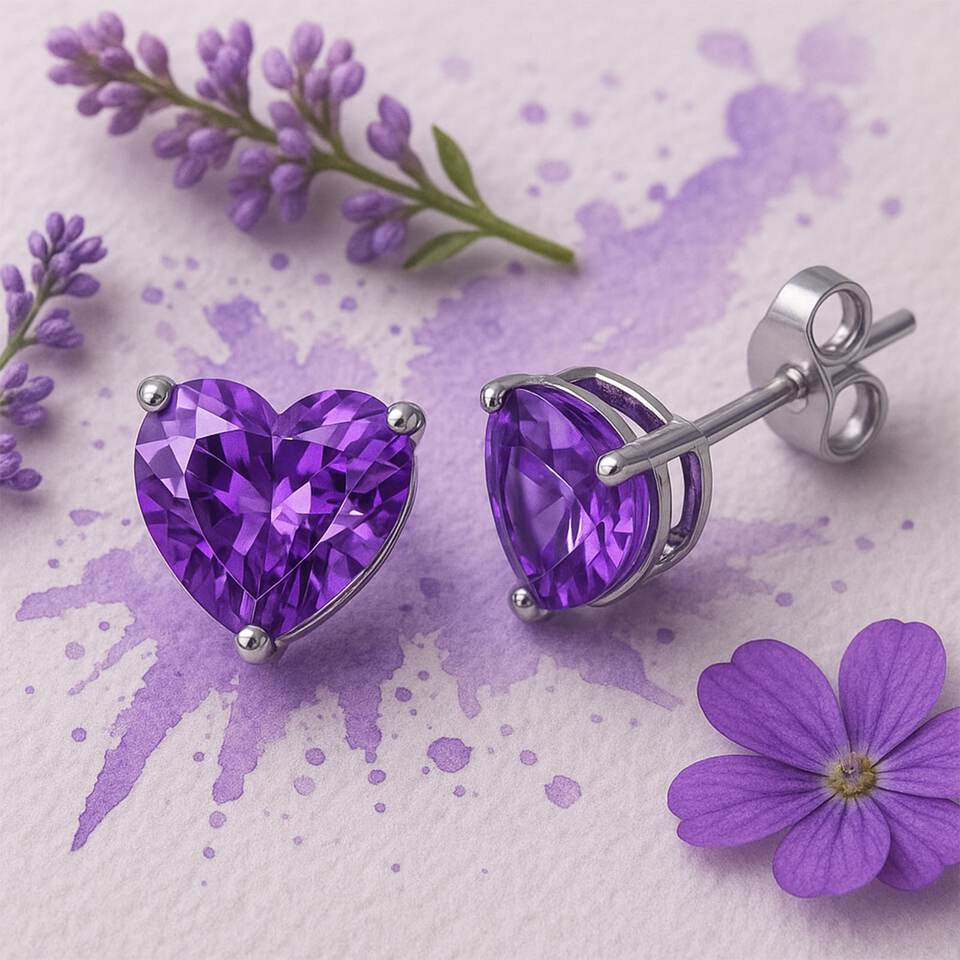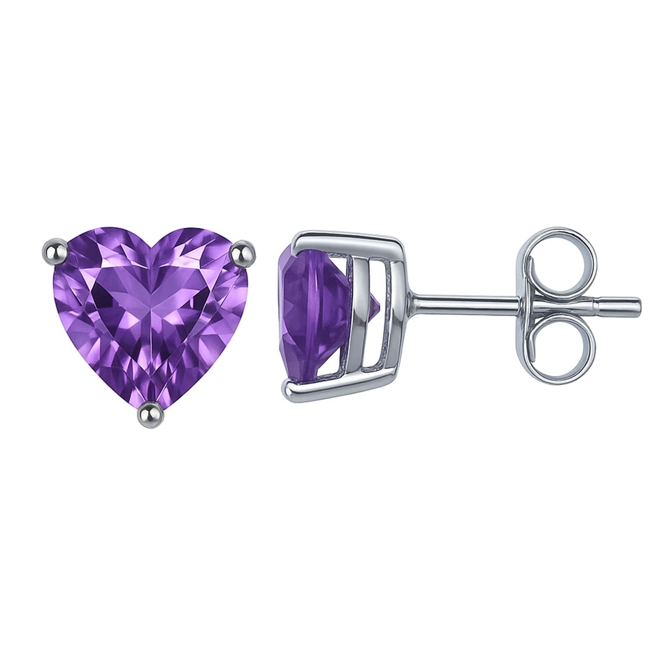 - Elevate your style with our handmade Purple Amethyst heart-shaped stud earrings, crafted from ethically sourced 925 sterling silver. These modern, contemporary pieces not only showcase a stunning 6×6 mm amethyst, known for promoting tranquility and balance, but also provide an affordable luxury touch to any woman’s jewelry collection. Weighing just 2 grams, these earrings offer both elegance and comfort for everyday wear.