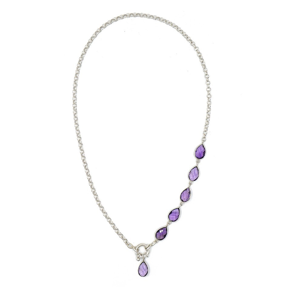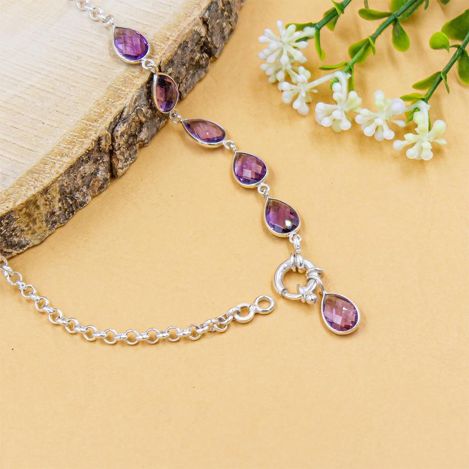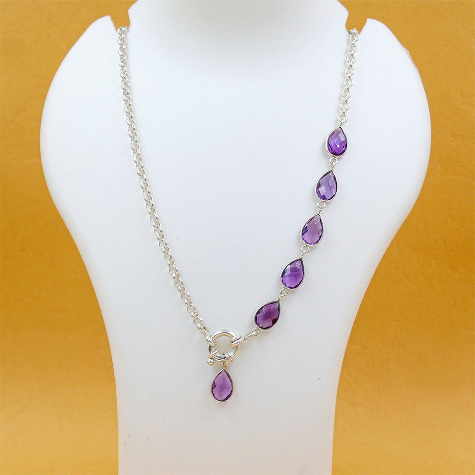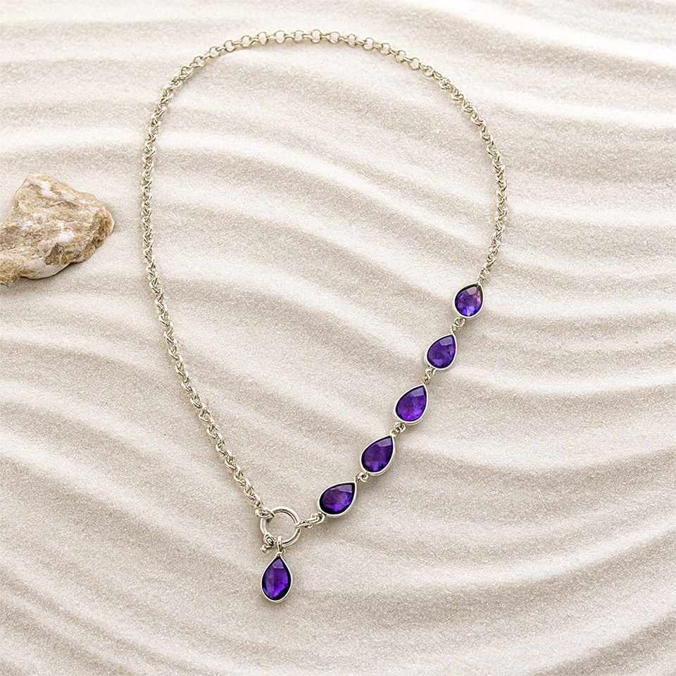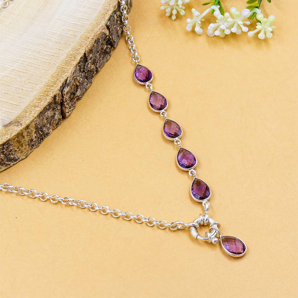 - TIMELESS HANDCRAFTED ELEGANCE: This handmade amethyst pendant necklace in 925 sterling silver drapes gracefully along the neckline, featuring five sparkling gemstones that catch the light beautifully. A purple crystal necklace that enhances her natural glow and brings effortless everyday luxury.