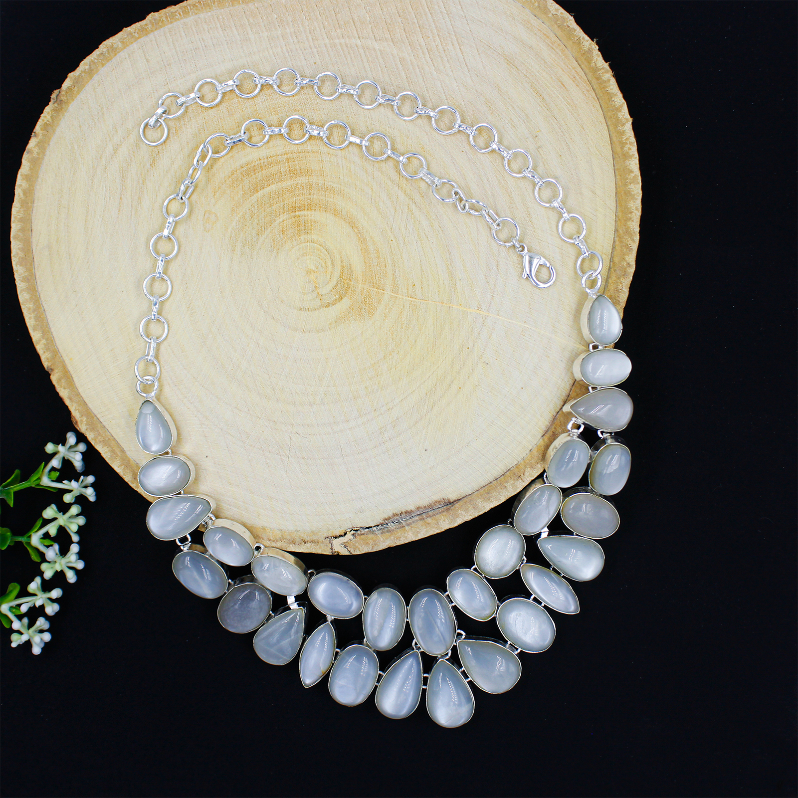 Handcrafted Moonstone Necklace for Women Silver-Plated Brass Statement Jewelry
