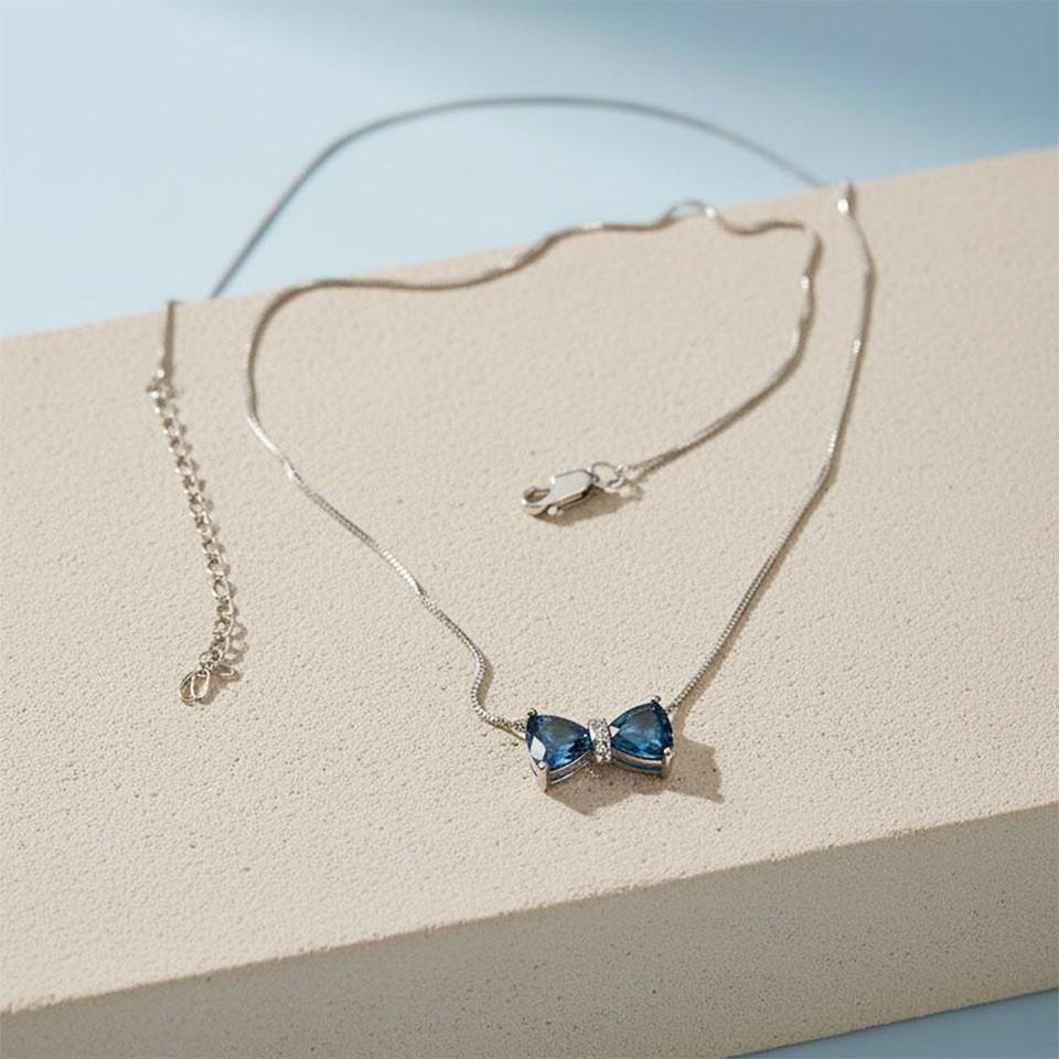• LUXE STERLING CRAFTSMANSHIP: Dainty bow pendant in 925 sterling silver with London Blue Topaz and CZ accents — a lightweight, elegant design that sits softly on the neckline for everyday polish or evening refinement.